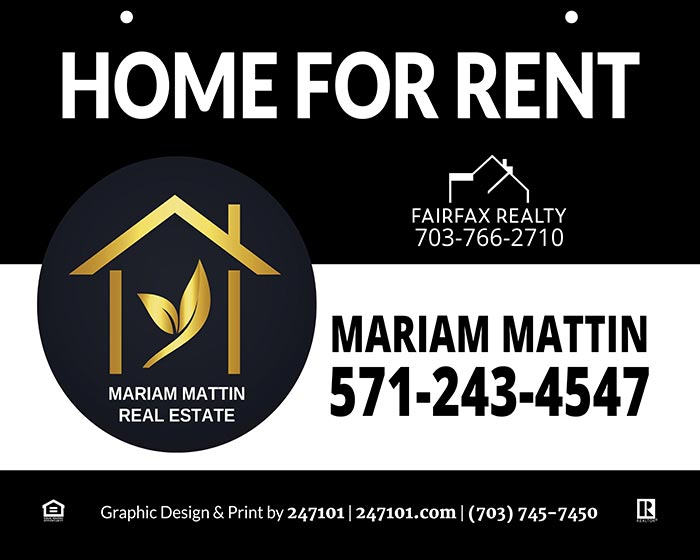 Realtors Yard Hanging Signs for Fairfax Realty 50/66 LLC Agents - Mariam Mattin
