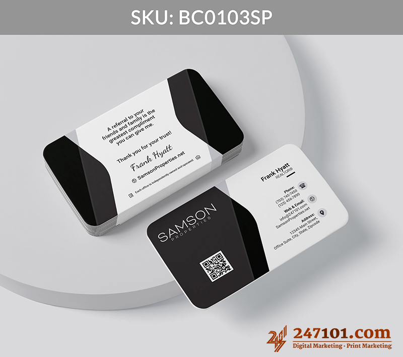 We offer a range of business card materials, including Paper Stock options like Premium Stock, ultra-thick cardstock For a polished look, you can choose from Premium Finishing options such as matte, glossy, or soft-touch laminate, pearl, or Painted Edge Card. Additionally, our Specialty Style options include Rounded , Square, and Leaf Style for added elegance. For more available choices, check the order form above or our Business Cards Options section below.