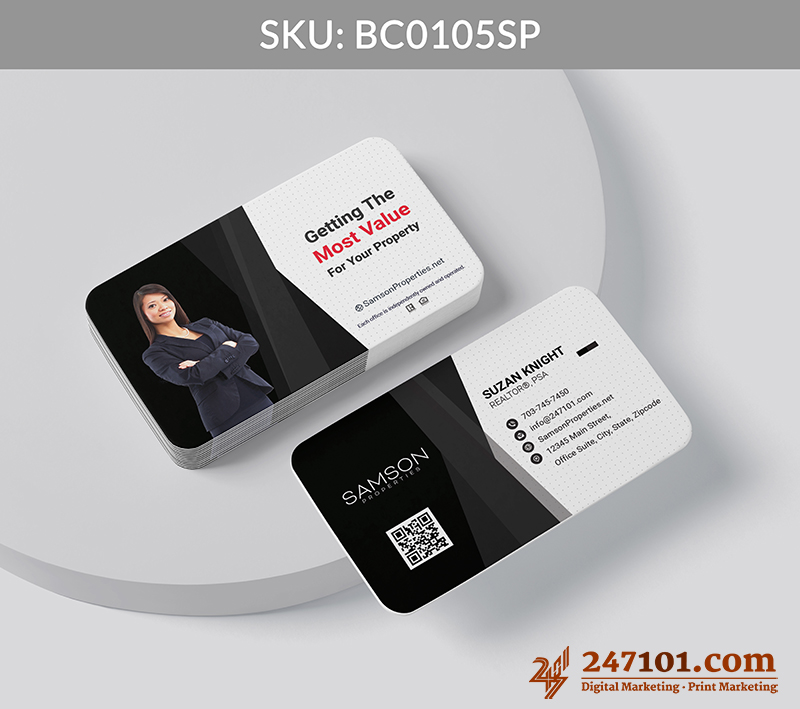 We offer a range of business card materials, including Paper Stock options like Premium Stock, ultra-thick cardstock For a polished look, you can choose from Premium Finishing options such as matte, glossy, or soft-touch laminate, pearl, or Painted Edge Card. Additionally, our Specialty Style options include Rounded , Square, and Leaf Style for added elegance. For more available choices, check the order form above or our Business Cards Options section below.