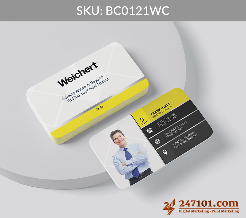 We offer a range of business card materials, including Paper Stock options like Premium Stock, ultra-thick cardstock For a polished look, you can choose from Premium Finishing options such as matte, glossy, or soft-touch laminate, pearl, or Painted Edge Card. Additionally, our Specialty Style options include Rounded , Square, and Leaf Style for added elegance. For more available choices, check the order form above or our Business Cards Options section below.