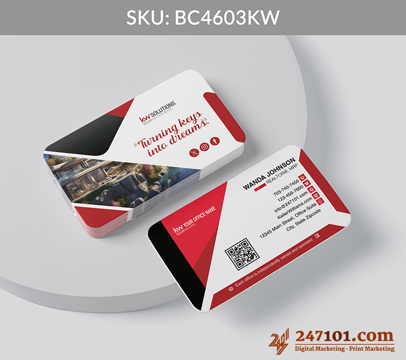 An integrated QR code turns every card into a direct gateway to your website, listings, portfolio, or reviews—making follow-up effortless and immediate.