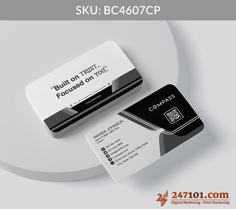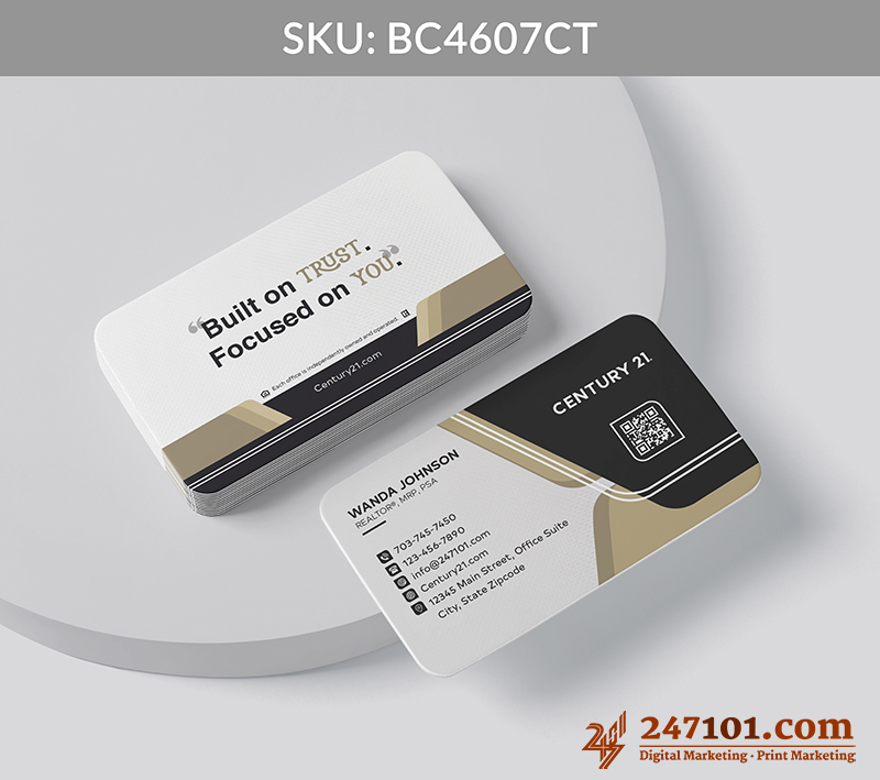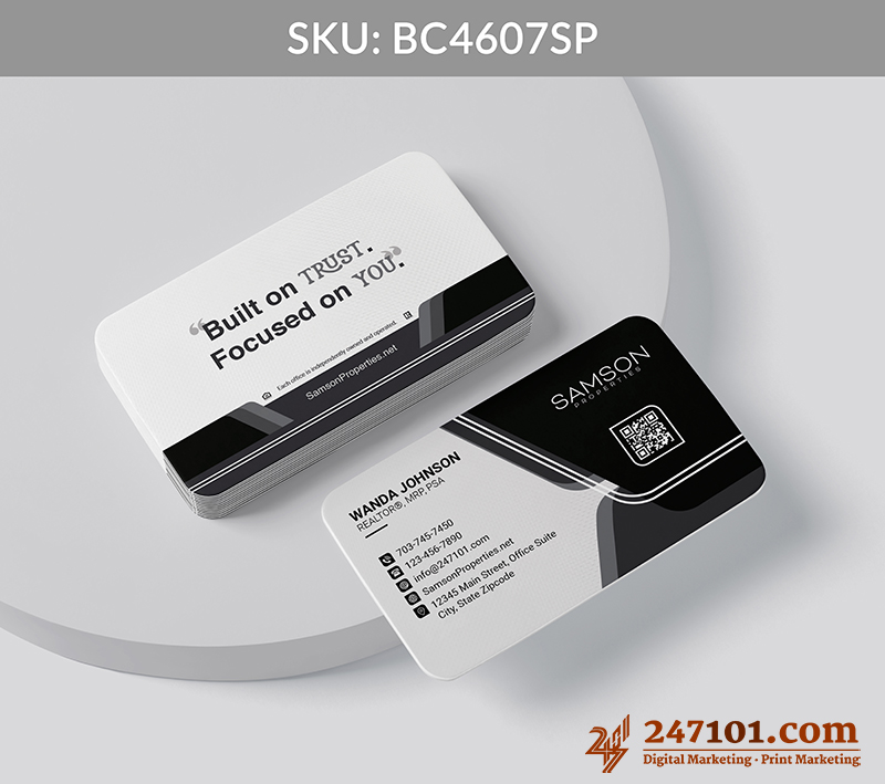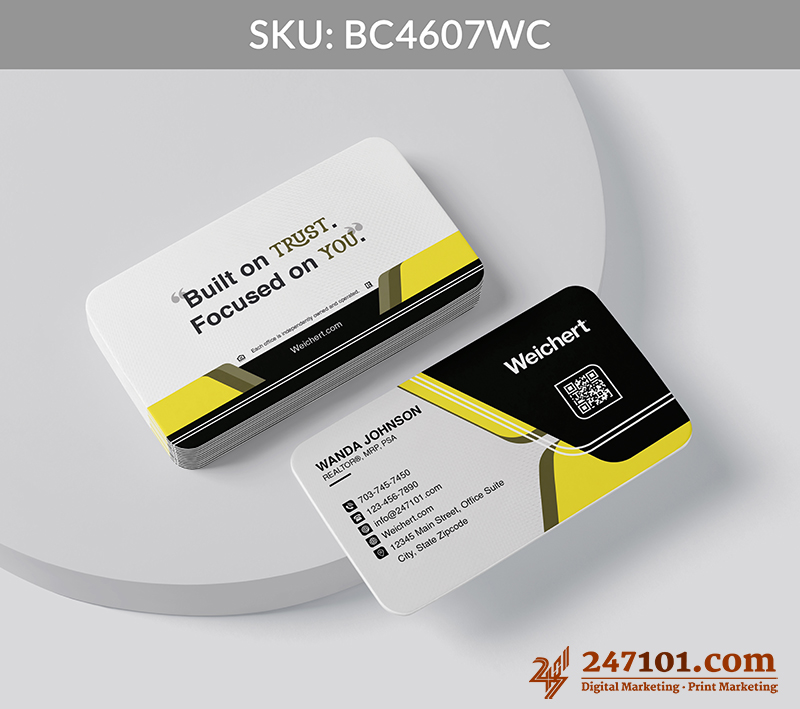 We offer a range of business card materials, including Paper Stock options like Premium Stock, ultra-thick cardstock For a polished look, you can choose from Premium Finishing options such as matte, glossy, or soft-touch laminate, pearl, or Painted Edge Card. Additionally, our Specialty Style options include Rounded , Square, and Leaf Style for added elegance. For more available choices, check the order form above or our Business Cards Options section below.
