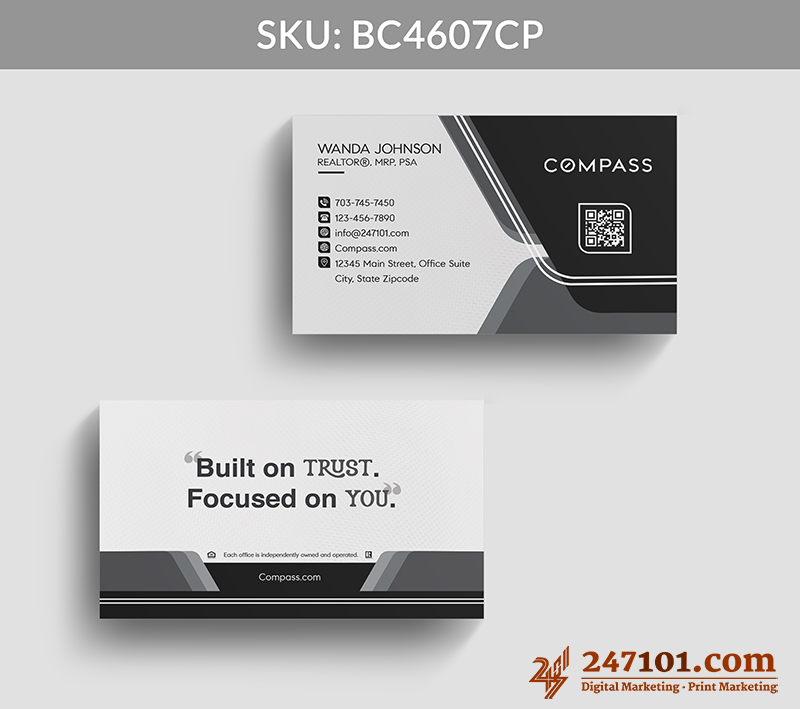 An integrated QR code gives clients immediate access to your website, listings, or contact page—making follow-up fast, simple, and seamless.