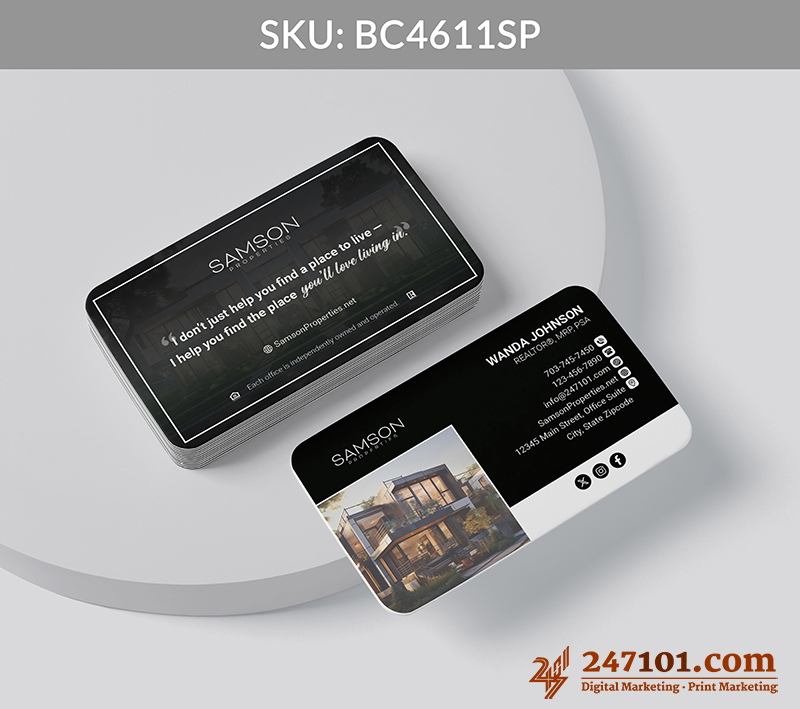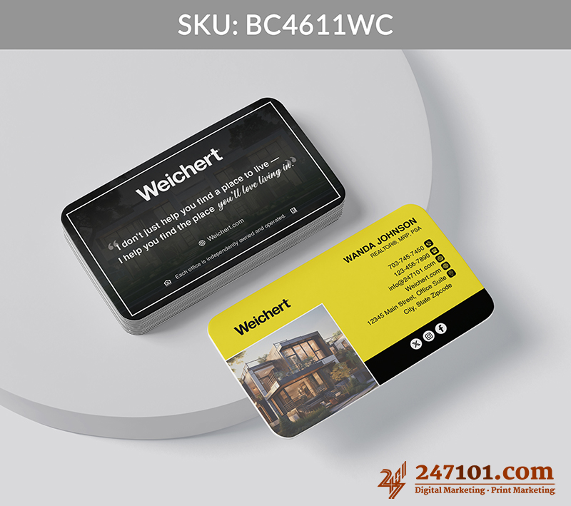 We offer a range of business card materials, including Paper Stock options like Premium Stock, ultra-thick cardstock For a polished look, you can choose from Premium Finishing options such as matte, glossy, or soft-touch laminate, pearl, or Painted Edge Card. Additionally, our Specialty Style options include Rounded , Square, and Leaf Style for added elegance. For more available choices, check the order form above or our Business Cards Options section below.