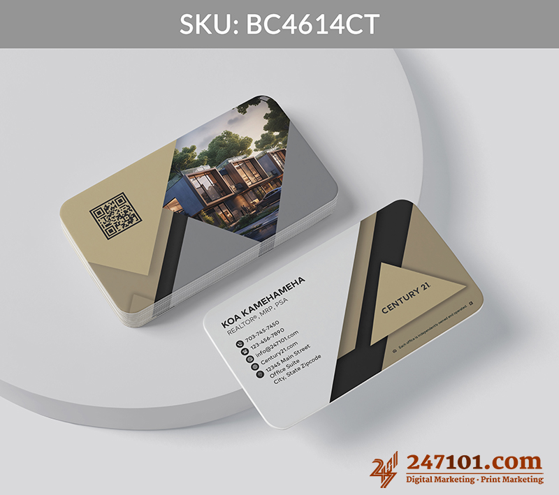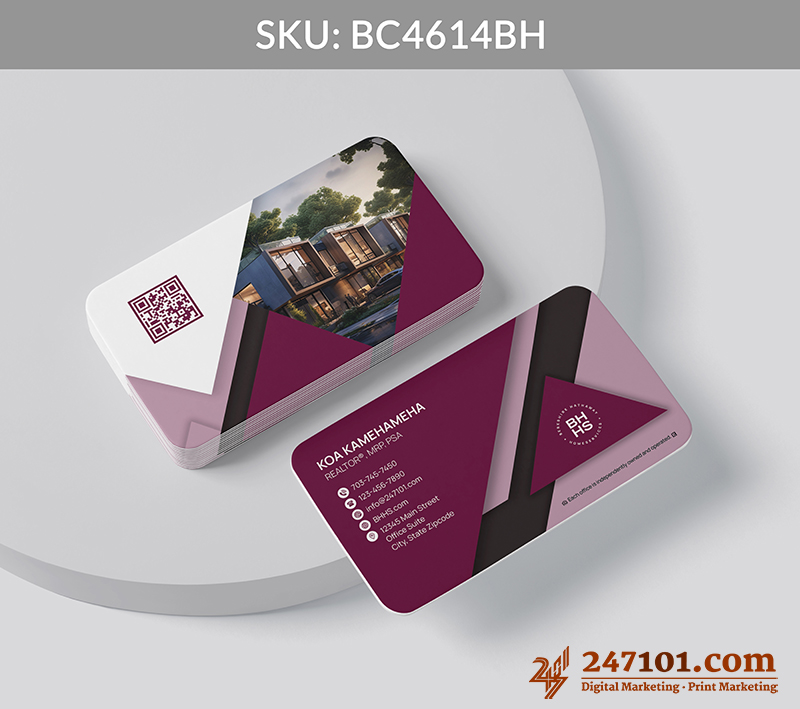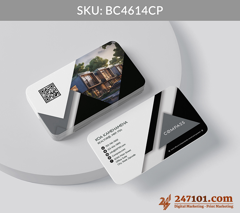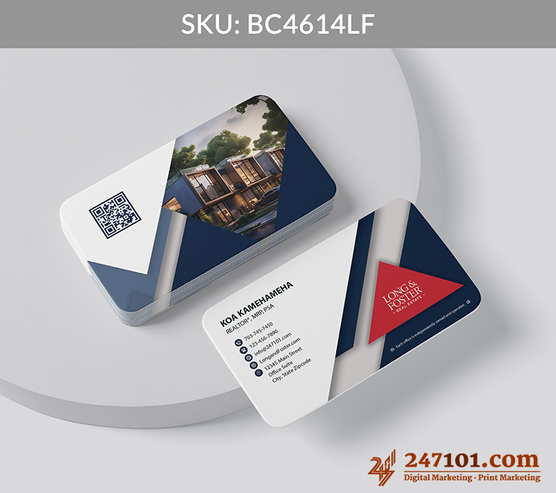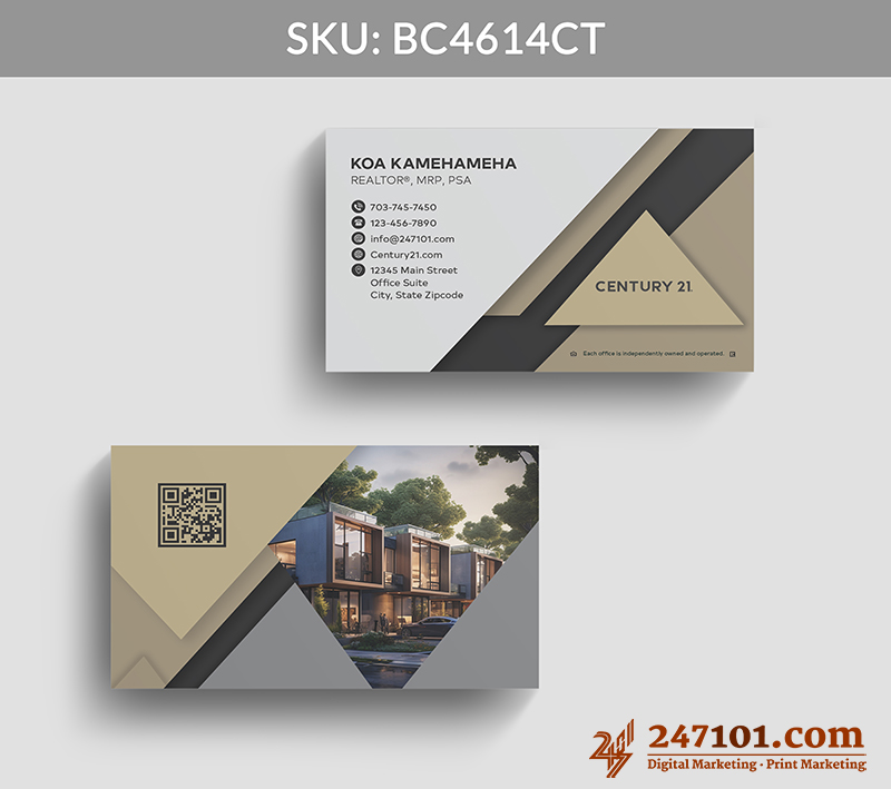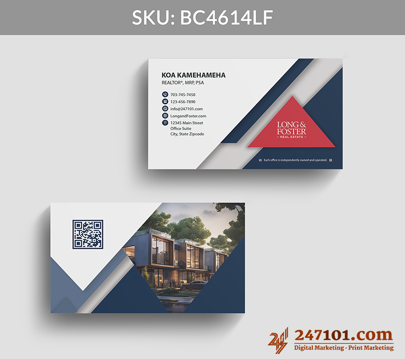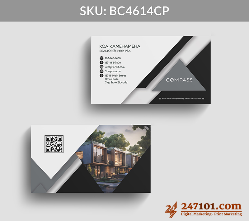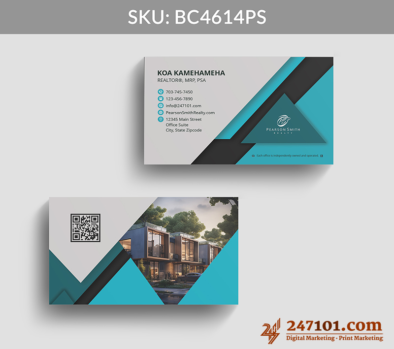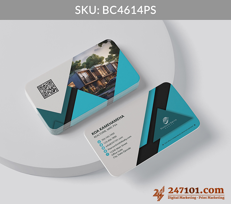 Use the modern home background on the back to communicate your knowledge, style, and real estate insight immediately.