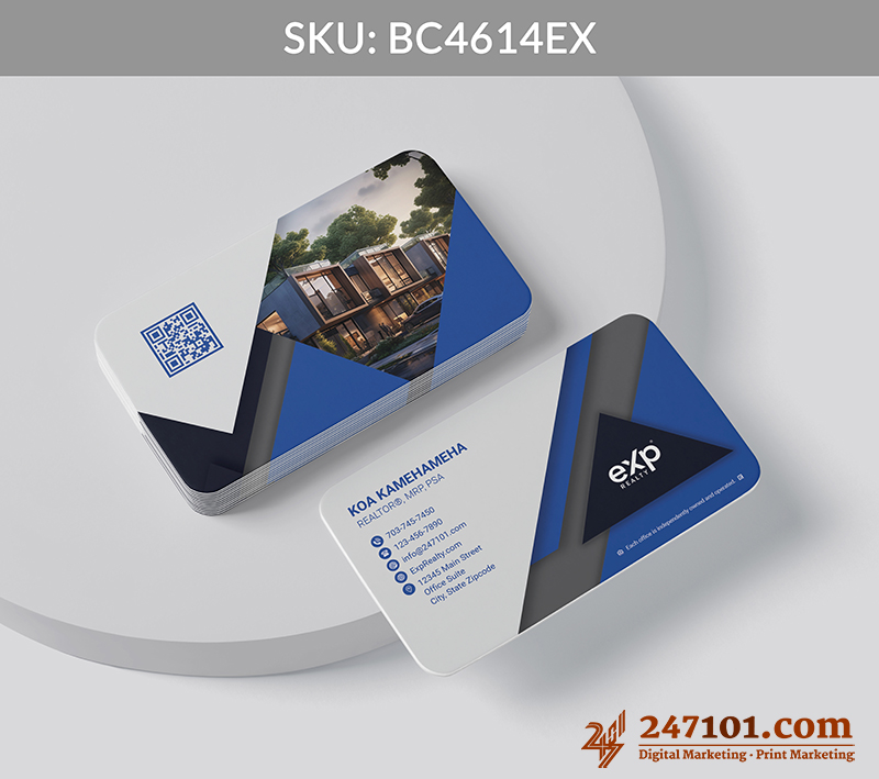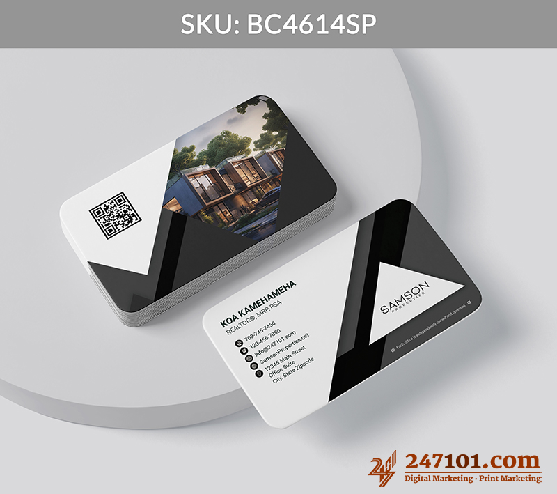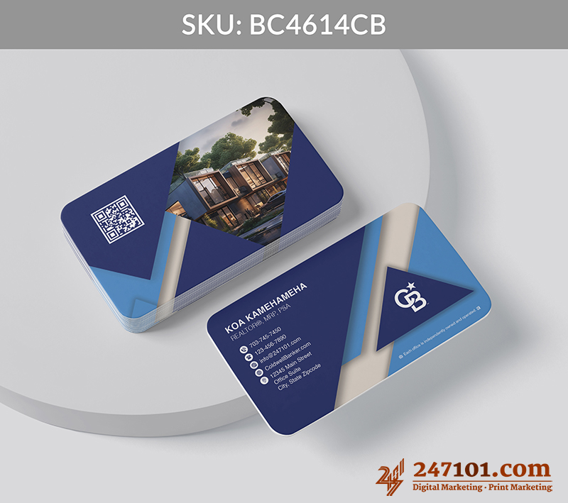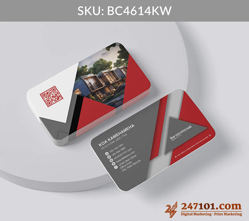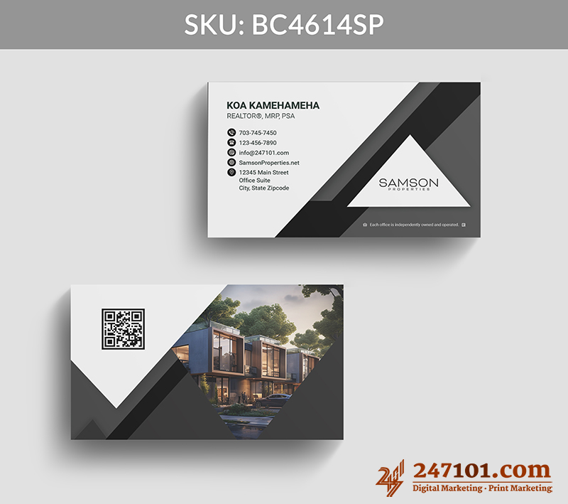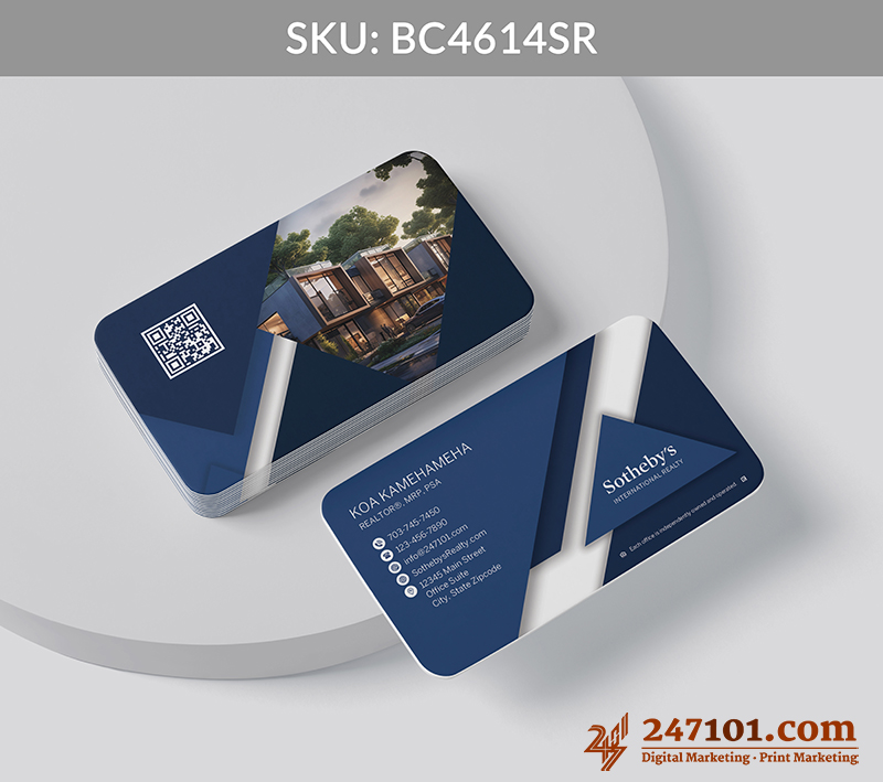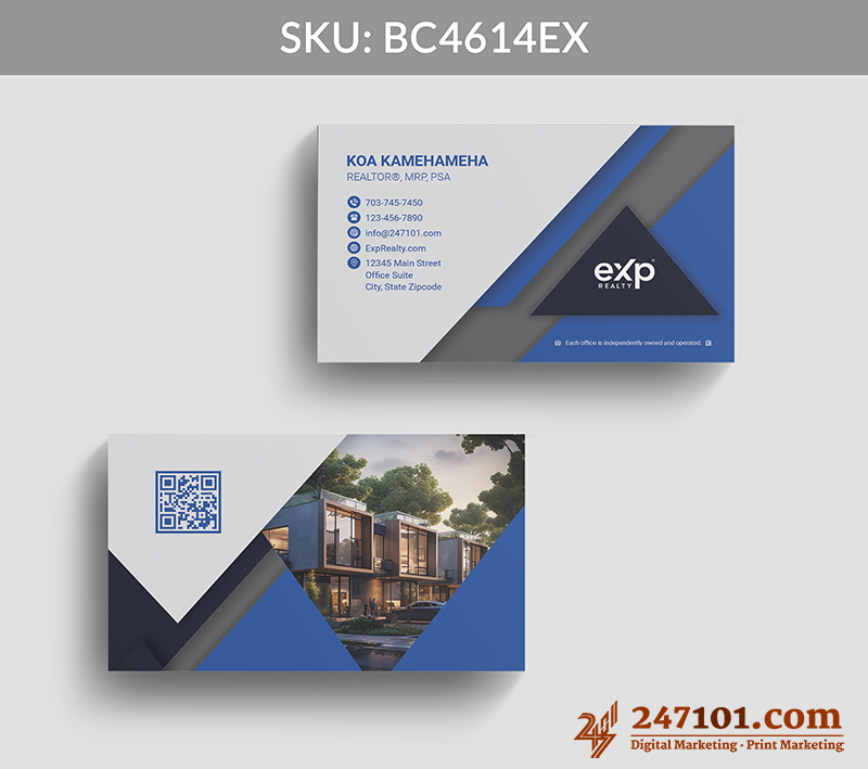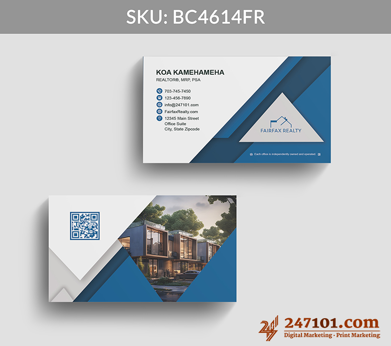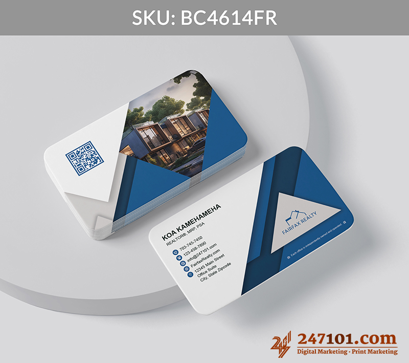 Use the modern home background on the back to communicate your knowledge, style, and real estate insight immediately.