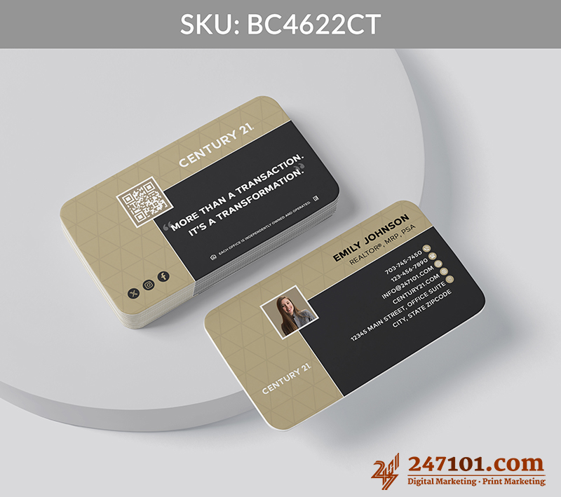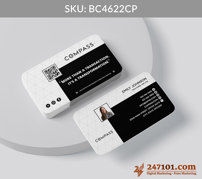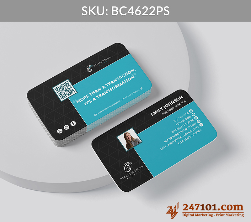We offer a range of business card materials, including Paper Stock options like Premium Stock, ultra-thick cardstock For a polished look, you can choose from Premium Finishing options such as matte, glossy, or soft-touch laminate, pearl, or Painted Edge Card. Additionally, our Specialty Style options include Rounded , Square, and Leaf Style for added elegance. For more available choices, check the order form above or our Business Cards Options section below.