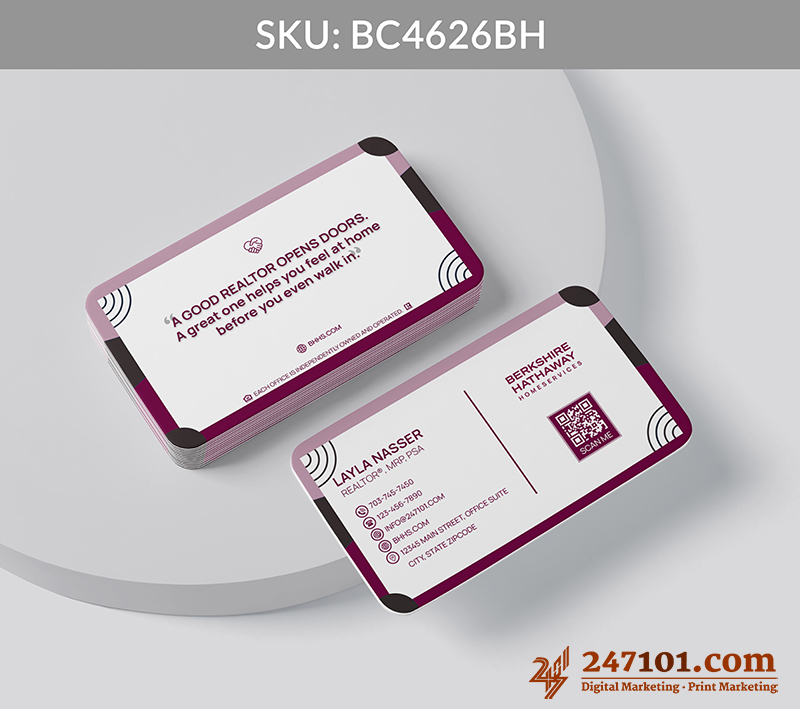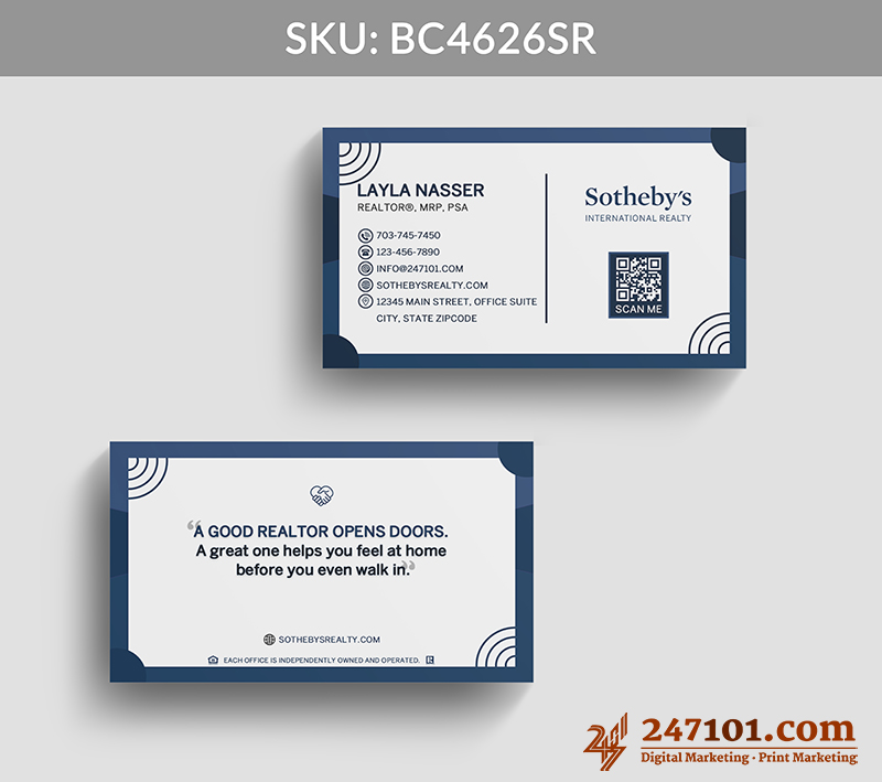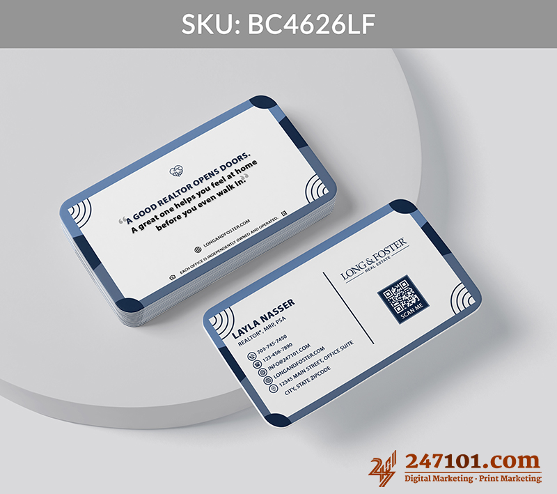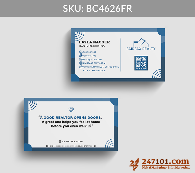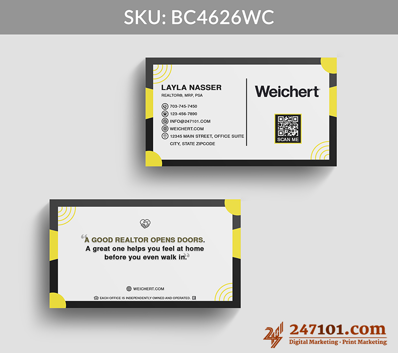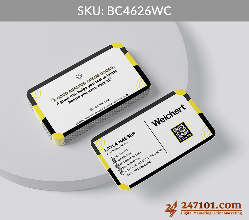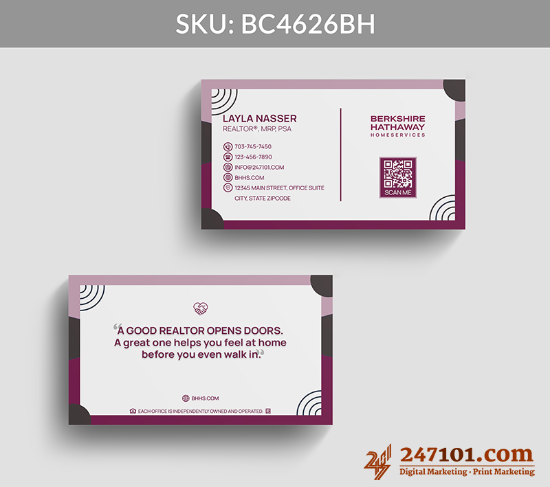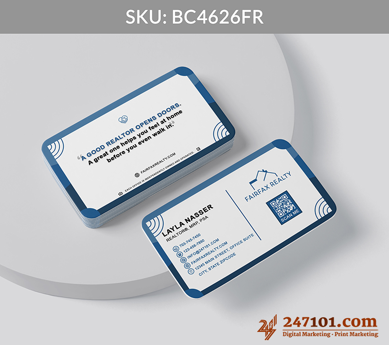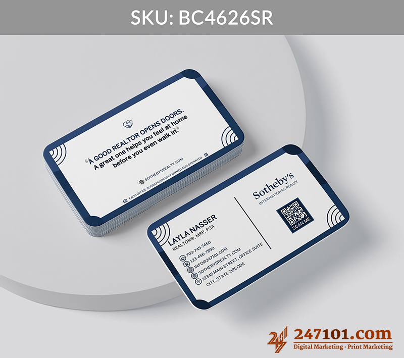 Integrated QR code connects clients directly to your website, listings, or portfolio, enhancing engagement and demonstrating modern, client-focused service.