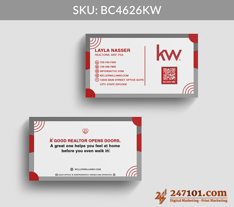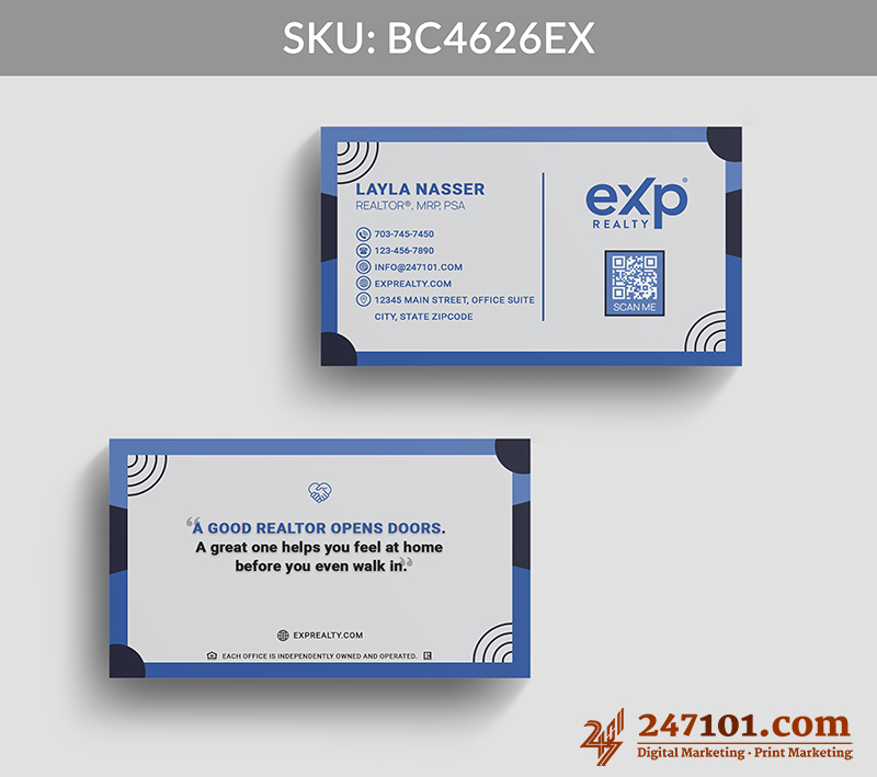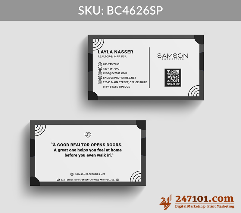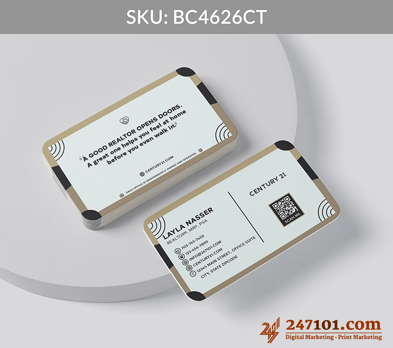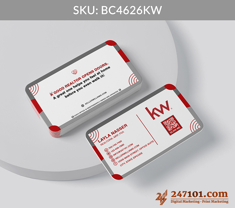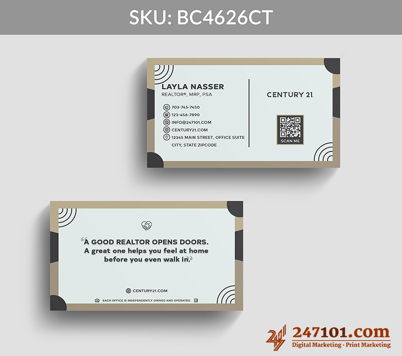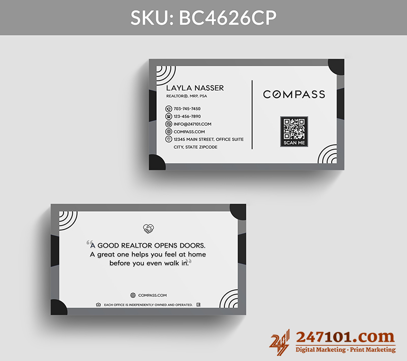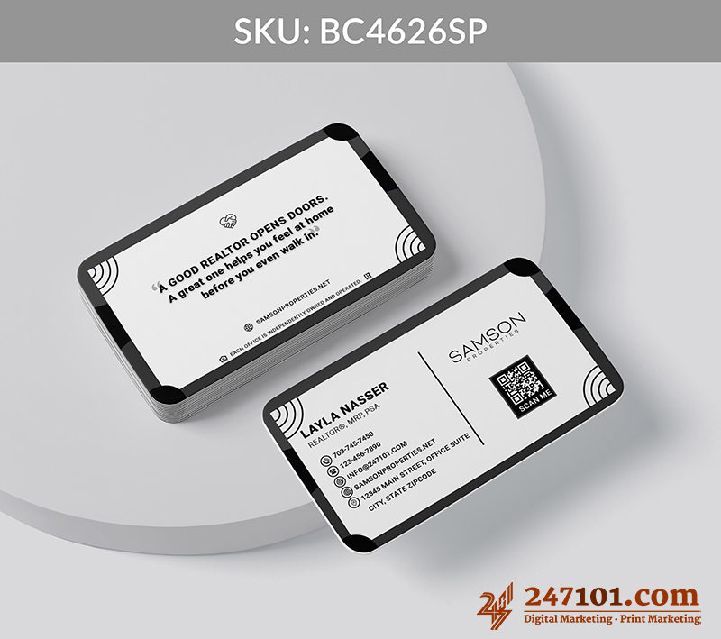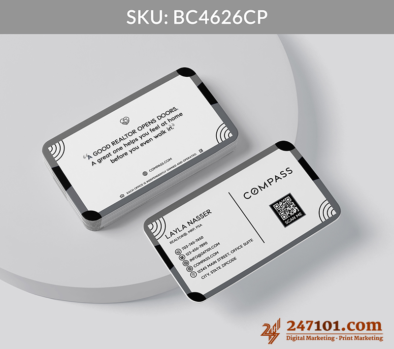 Integrated QR code connects clients directly to your website, listings, or portfolio, enhancing engagement and demonstrating modern, client-focused service.