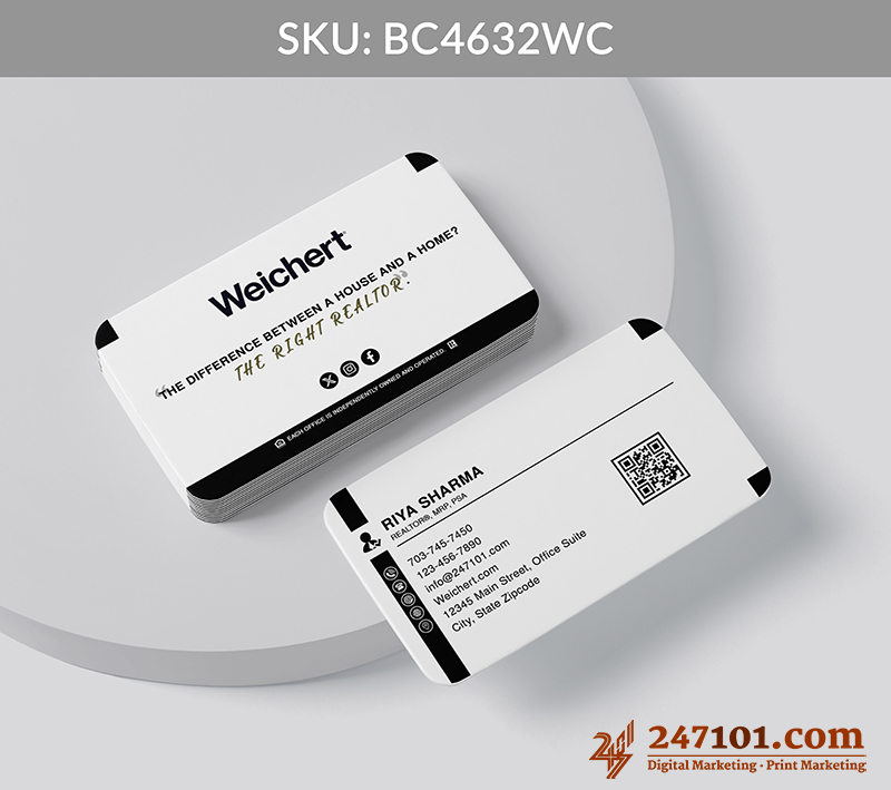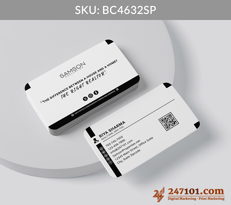 We offer a range of business card materials, including Paper Stock options like Premium Stock, ultra-thick cardstock For a polished look, you can choose from Premium Finishing options such as matte, glossy, or soft-touch laminate, pearl, or Painted Edge Card. Additionally, our Specialty Style options include Rounded , Square, and Leaf Style for added elegance. For more available choices, check the order form above or our Business Cards Options section below.