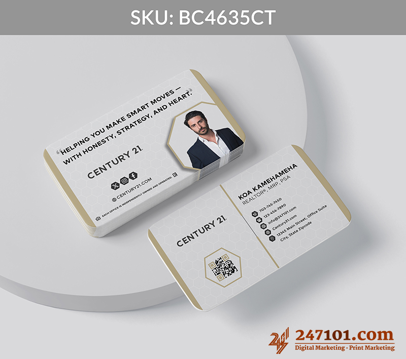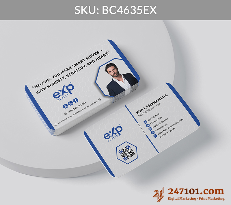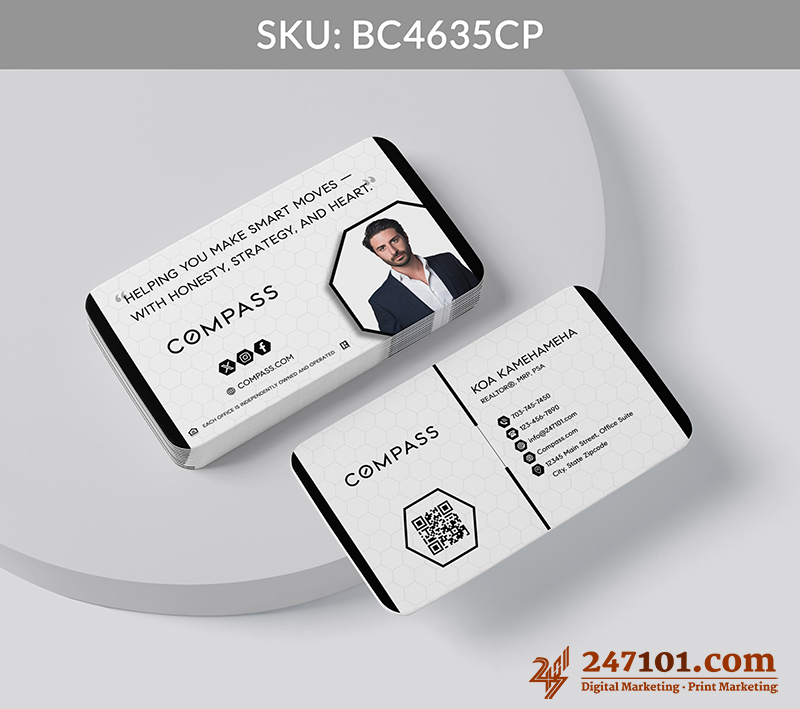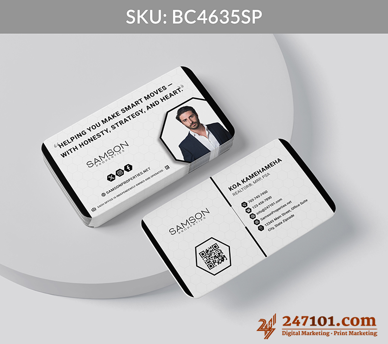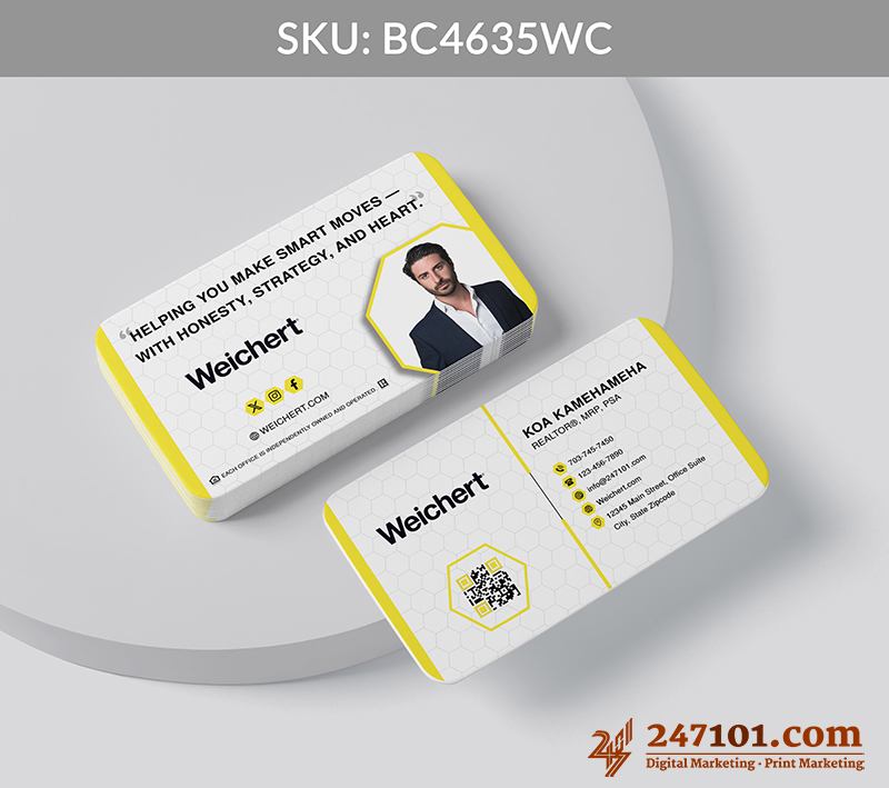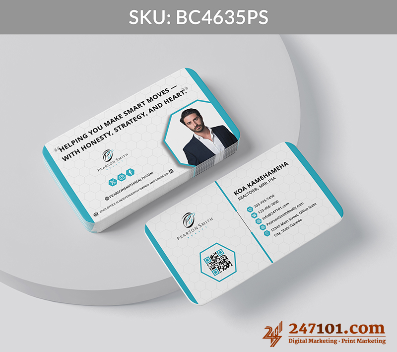 Encourage clients to explore your social media profiles and online resources via the back-side icons and QR Code, blending traditional networking with digital accessibility.