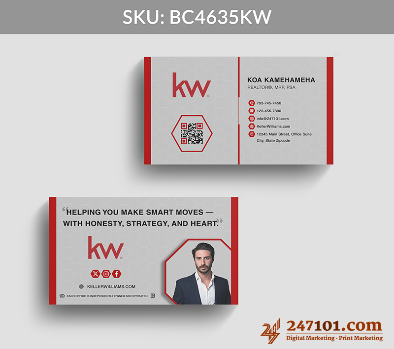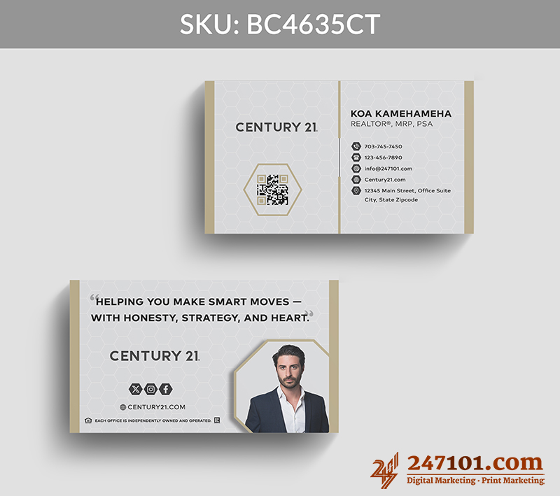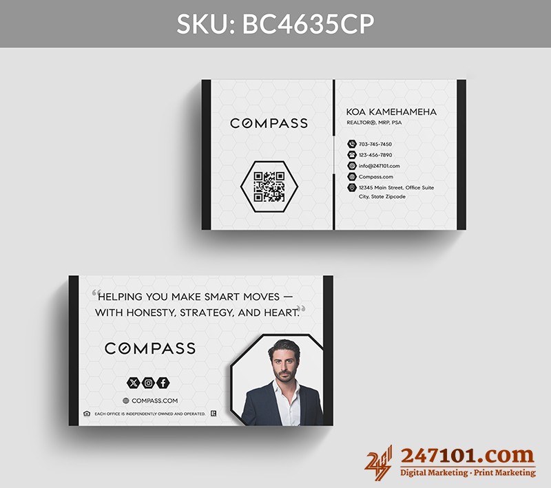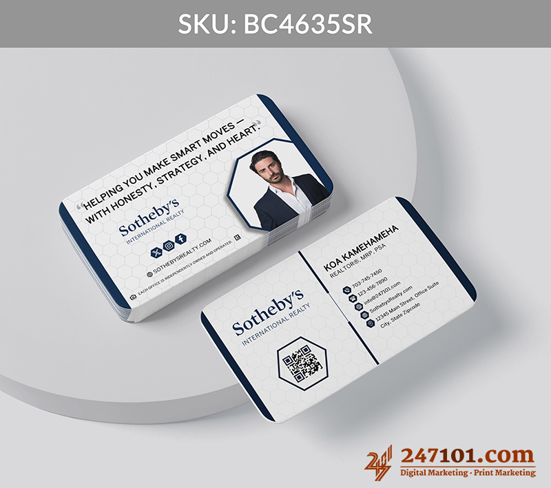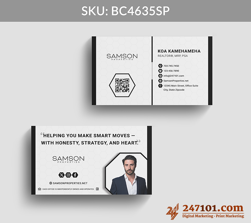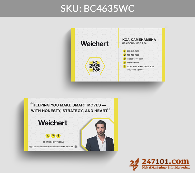 Strategically positioned logo and QR Code give clients immediate access to your listings and services while reinforcing your professional identity.