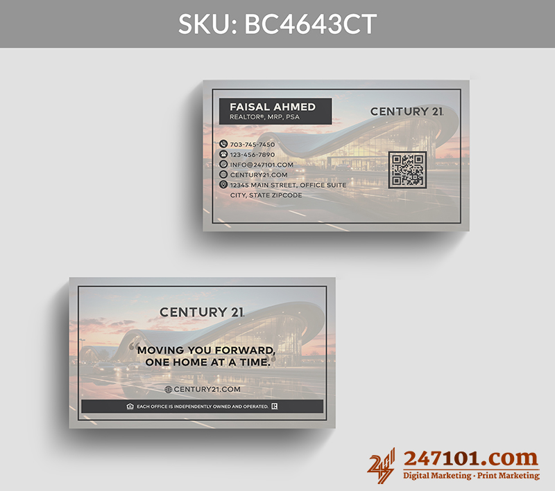 The integrated QR Code and clear contact details allow clients to access listings, social profiles, or your website instantly, making engagement effortless and professional.