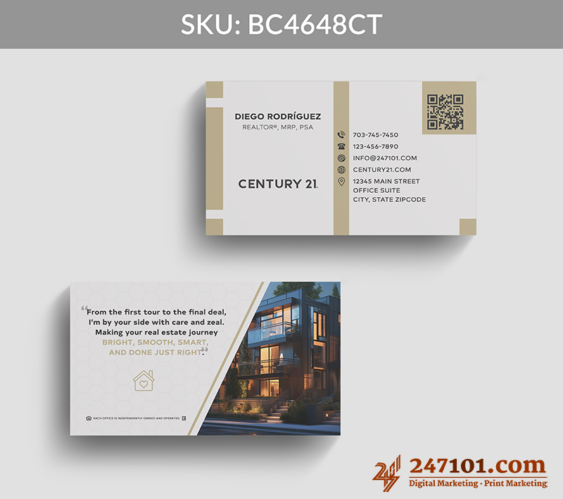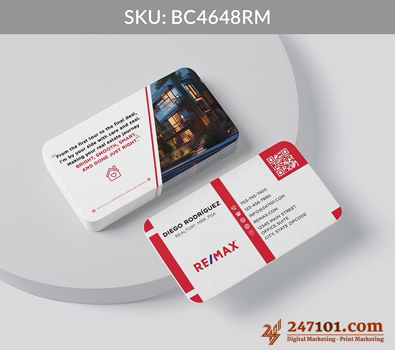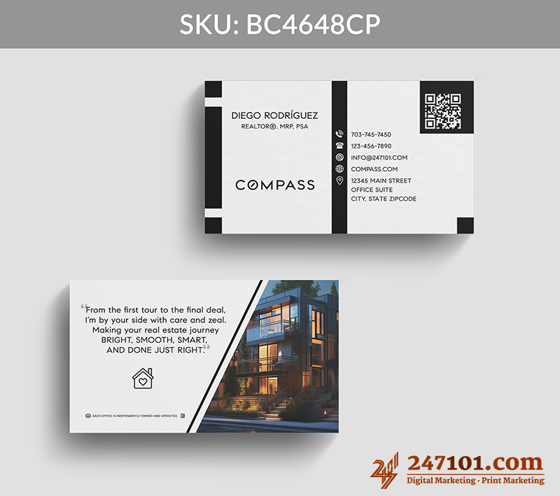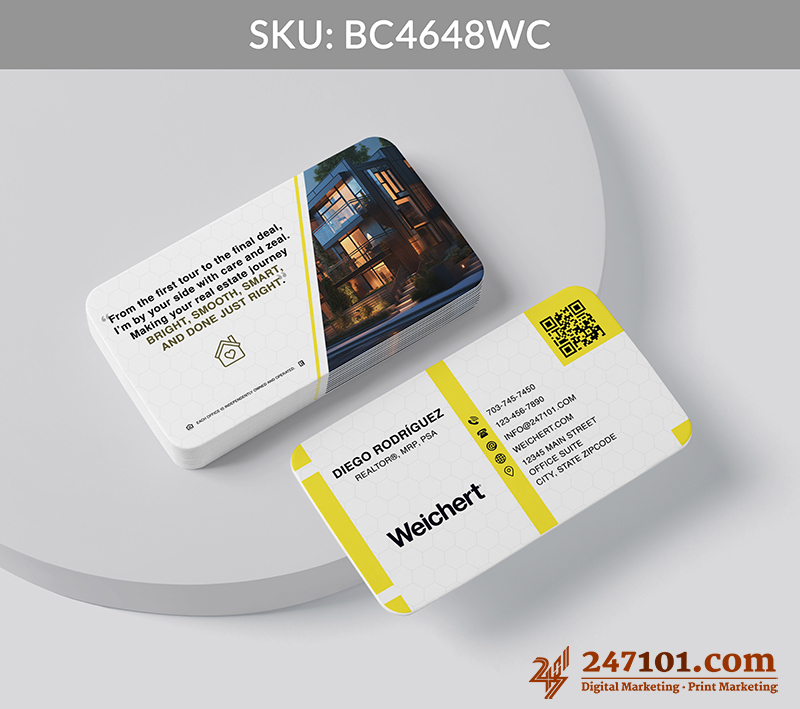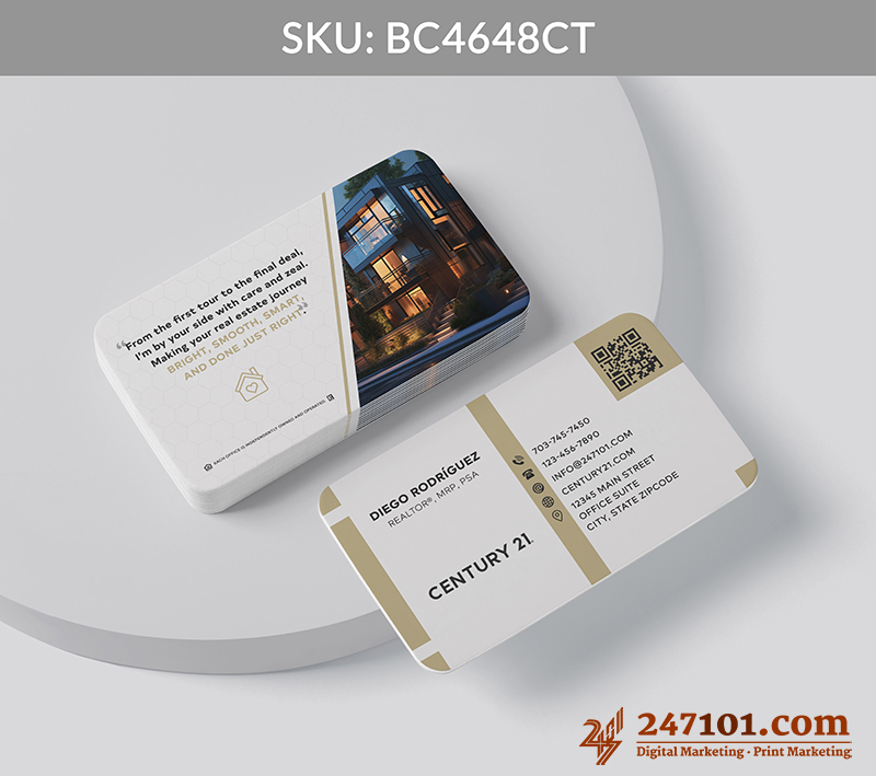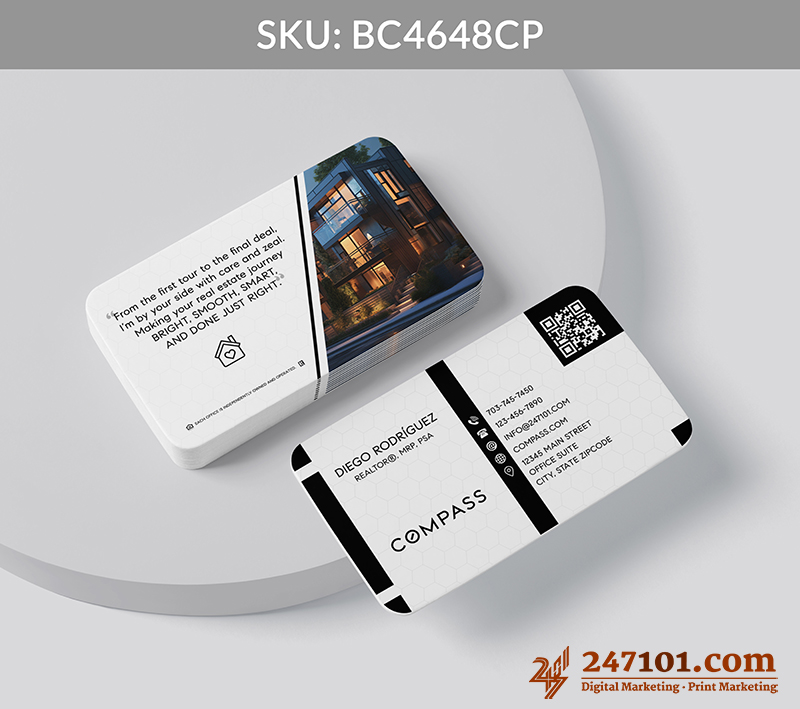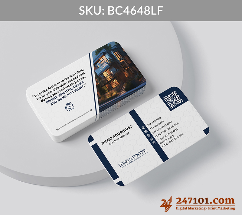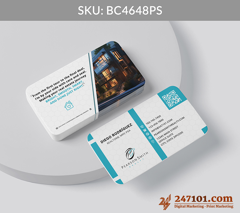 Use the residential image background to visually highlight your expertise and signature listings, reinforcing your credibility without overwhelming the card’s essential details.