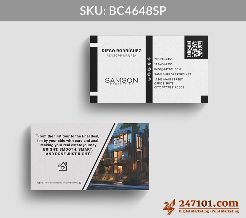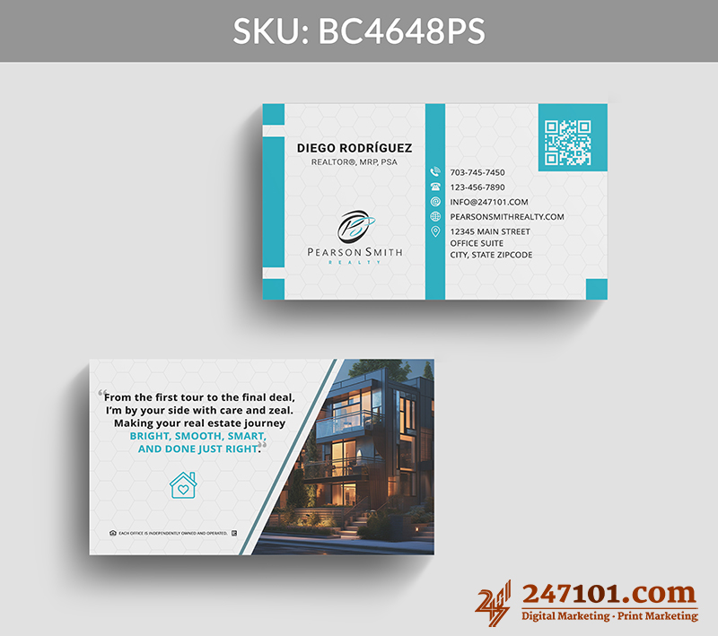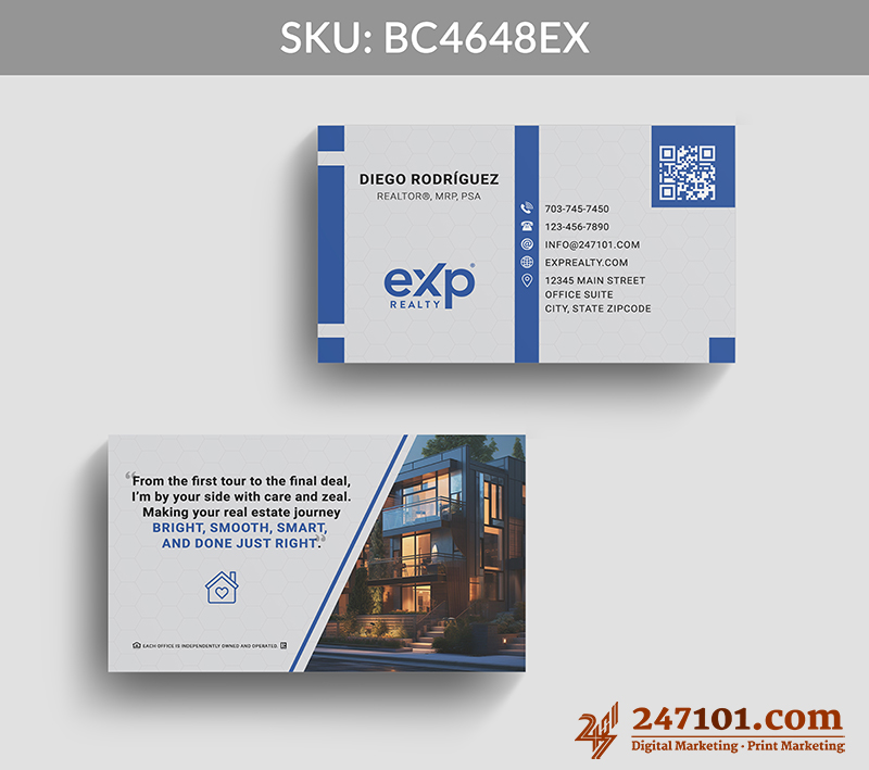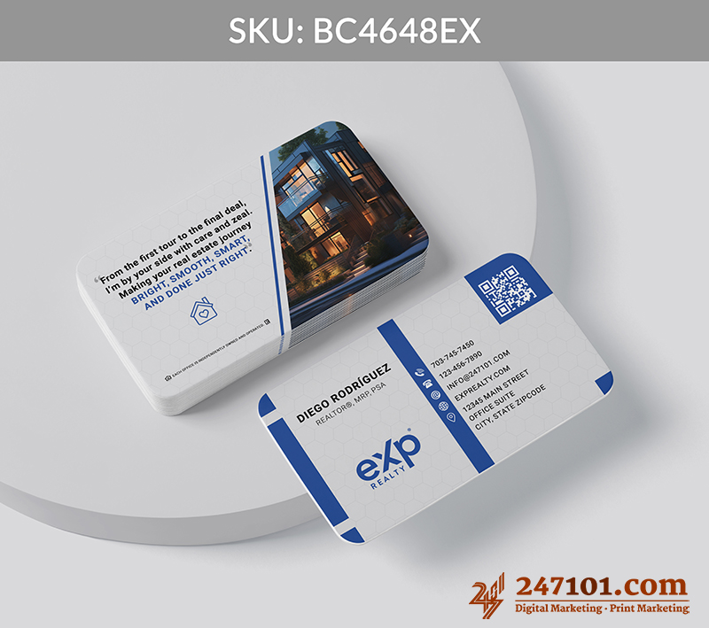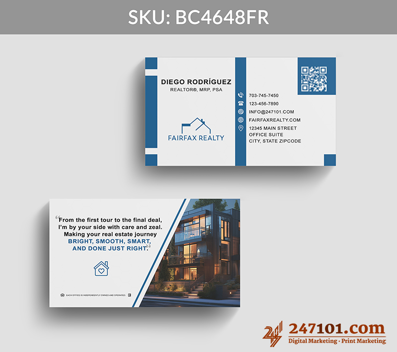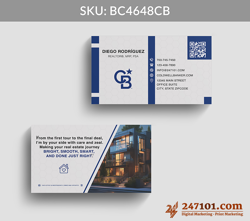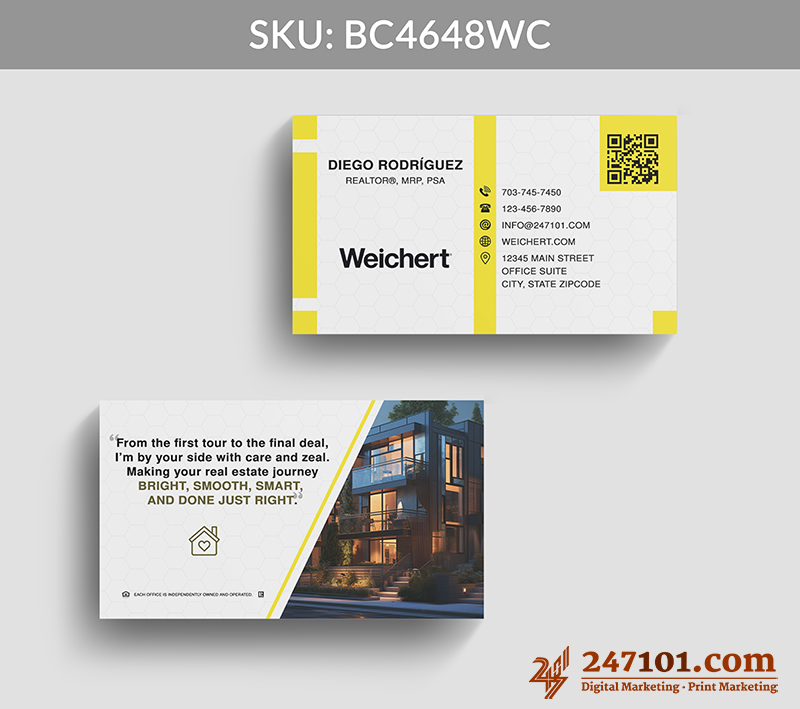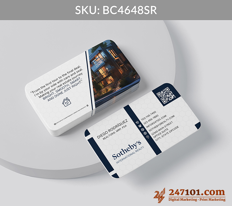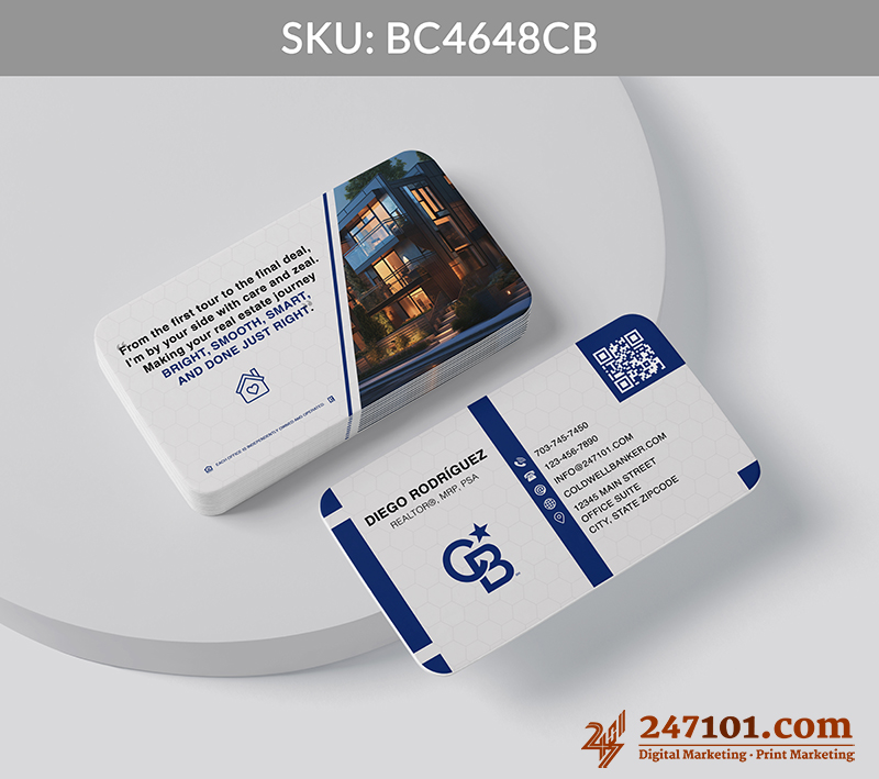 Use the residential image background to visually highlight your expertise and signature listings, reinforcing your credibility without overwhelming the card’s essential details.