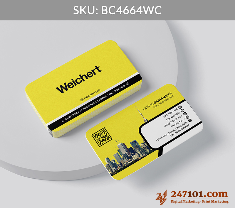Integrated QR Code allows clients to access listings, virtual tours, or your professional profile immediately, bridging in-person connections with a modern, tech-savvy approach.