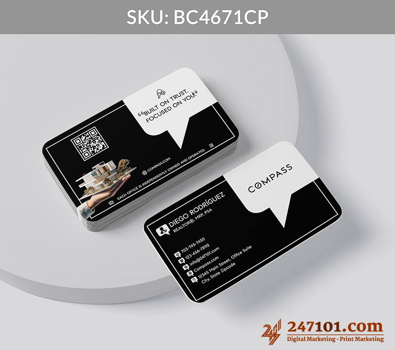 Pair the QR Code with the real estate-themed graphic to create a visually compelling card that communicates both style and credibility.