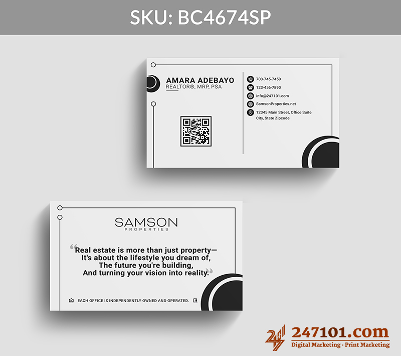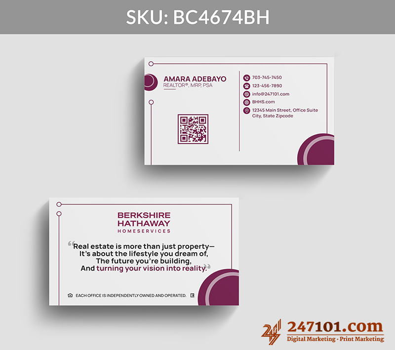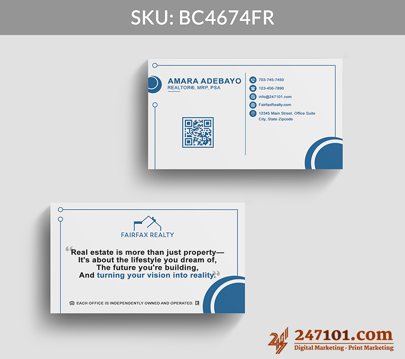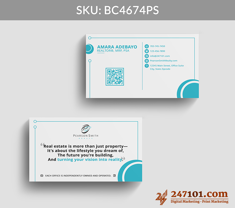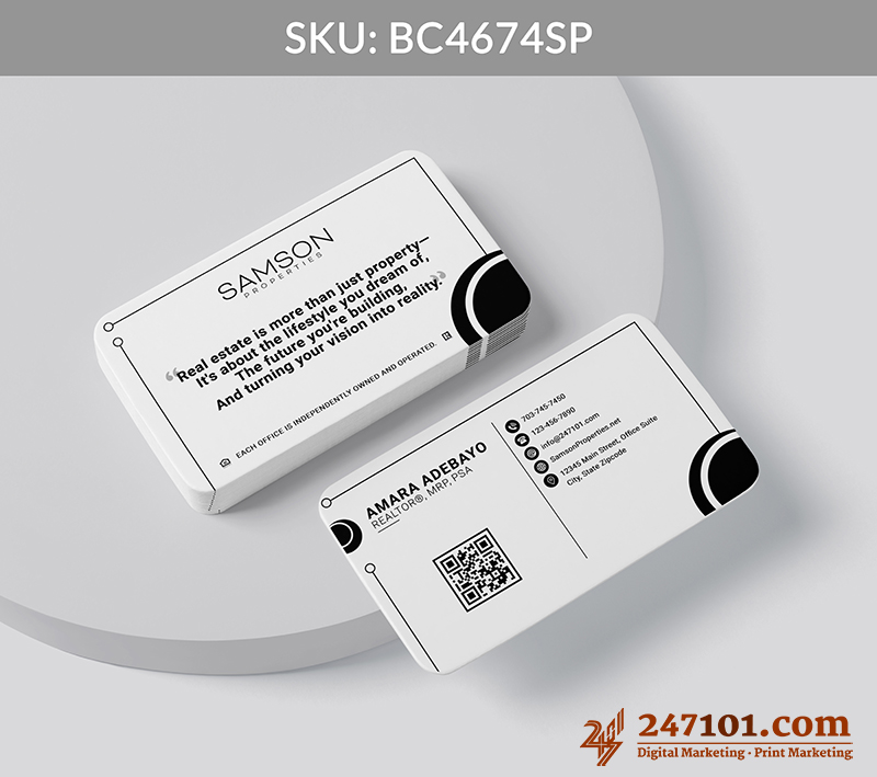 Professional Real Estate Business Card with QR Code & Mission Statement