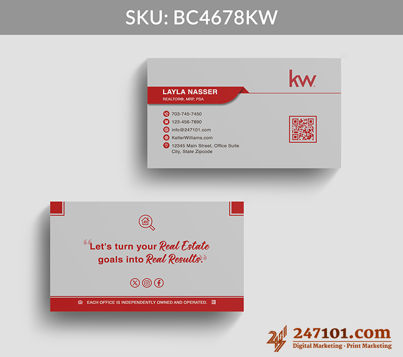 The front-facing logo, agent details, and QR code create seamless engagement, allowing clients to connect with your listings or contact information immediately.