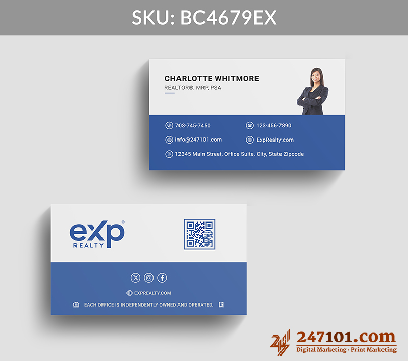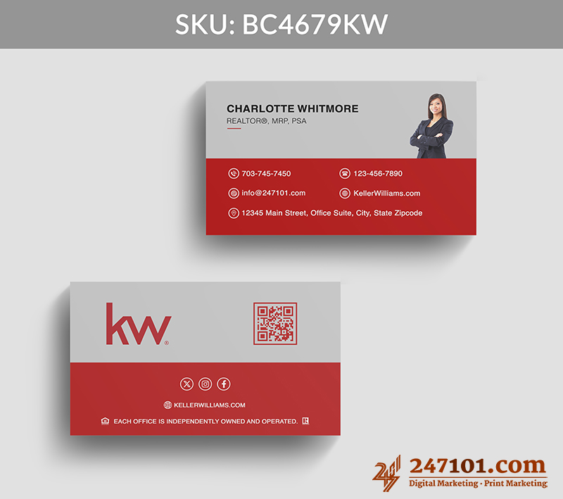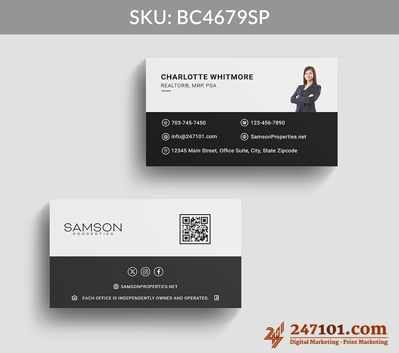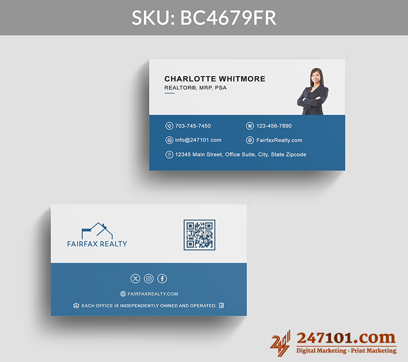 The integrated QR code, social icons, and website link make it effortless for clients to explore listings, connect online, and engage with your services immediately.