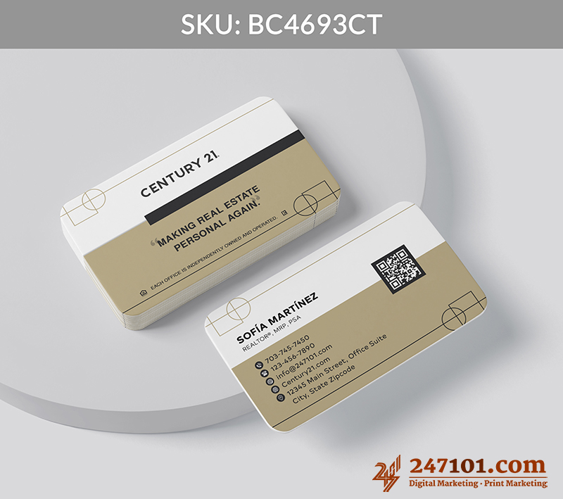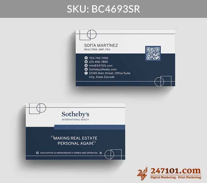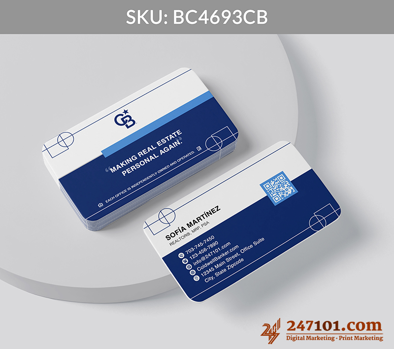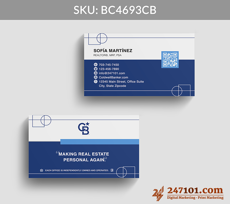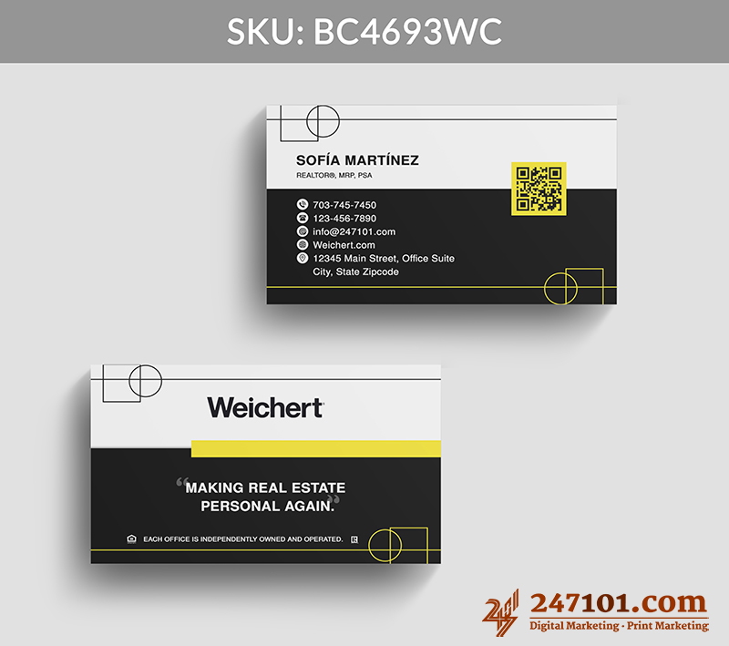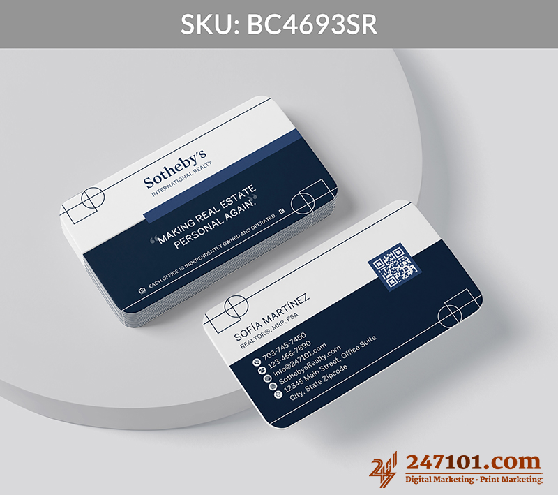 A prominently placed QR code removes friction, allowing clients to connect with your digital profile, listings, or website in seconds.