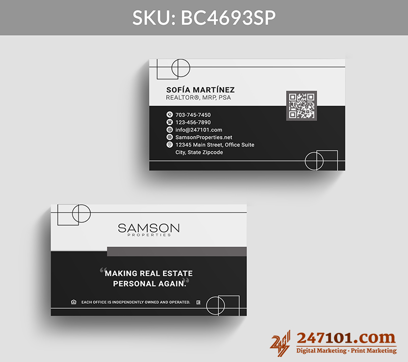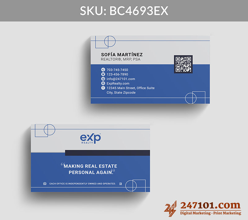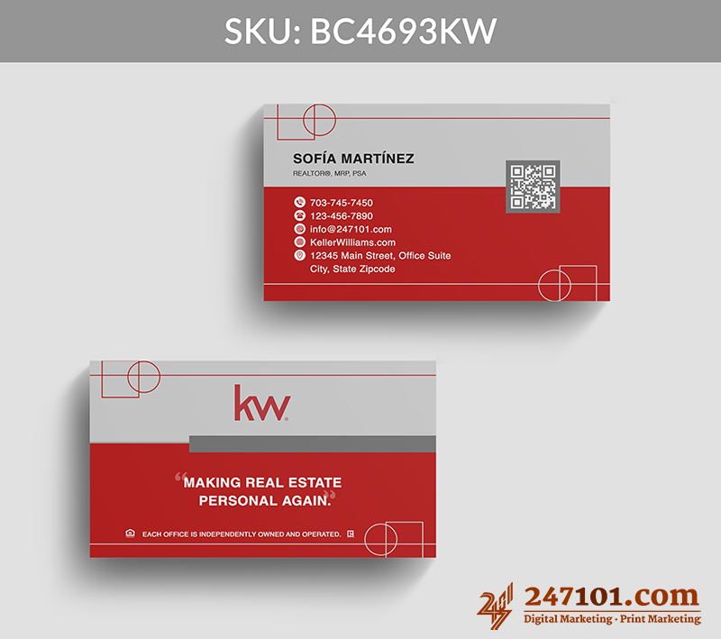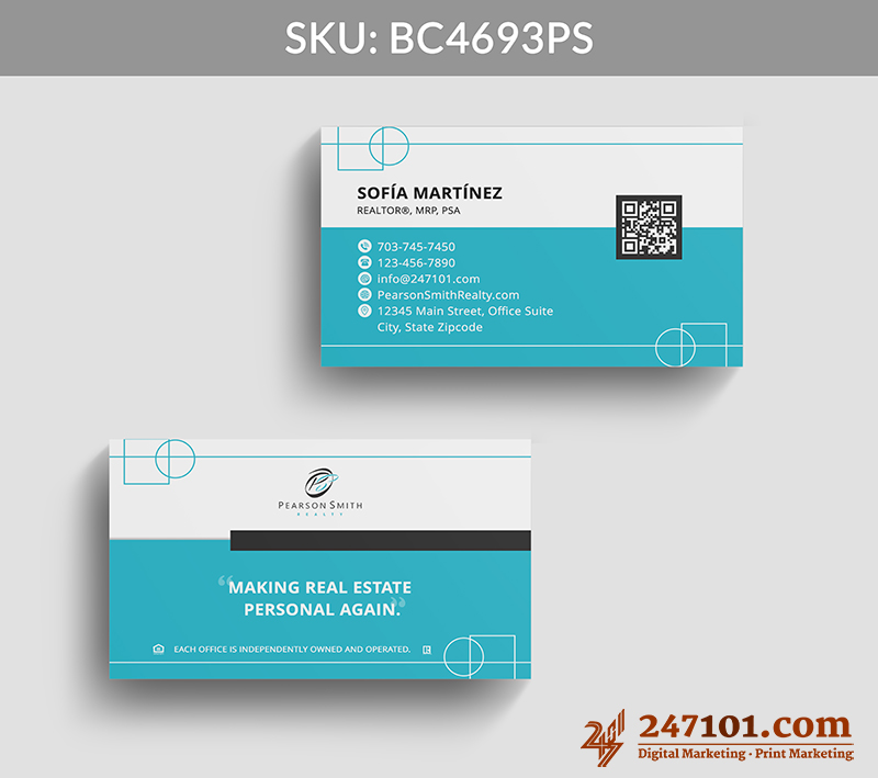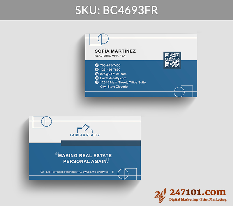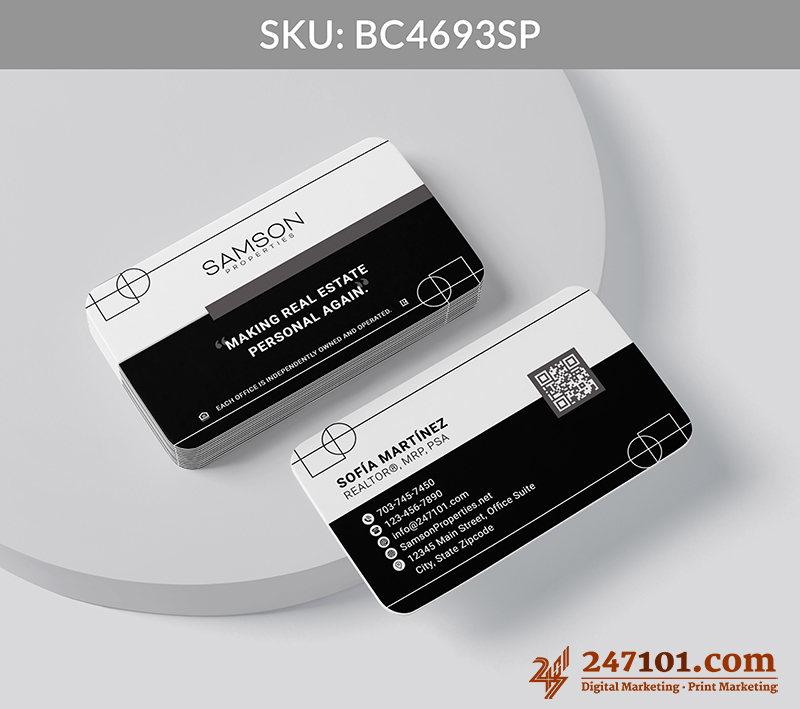 A prominently placed QR code removes friction, allowing clients to connect with your digital profile, listings, or website in seconds.