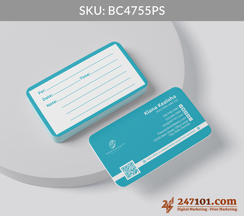 We offer a range of business card materials, including Paper Stock options like Premium Stock, ultra-thick cardstock For a polished look, you can choose from Premium Finishing options such as matte, glossy, or soft-touch laminate, pearl, or Painted Edge Card. Additionally, our Specialty Style options include Rounded , Square, and Leaf Style for added elegance. For more available choices, check the order form above or our Business Cards Options section below.