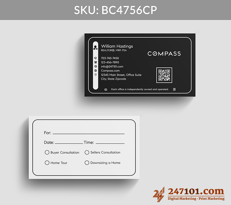 Turn every introduction into action with a clear, information-rich front layout that makes it effortless for clients to contact you or connect digitally in seconds.