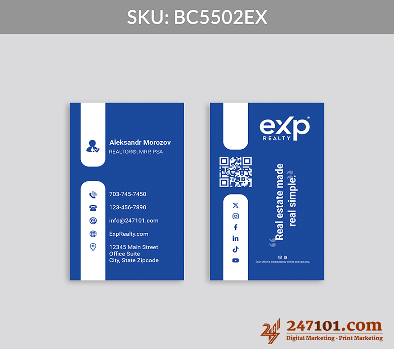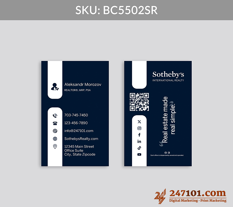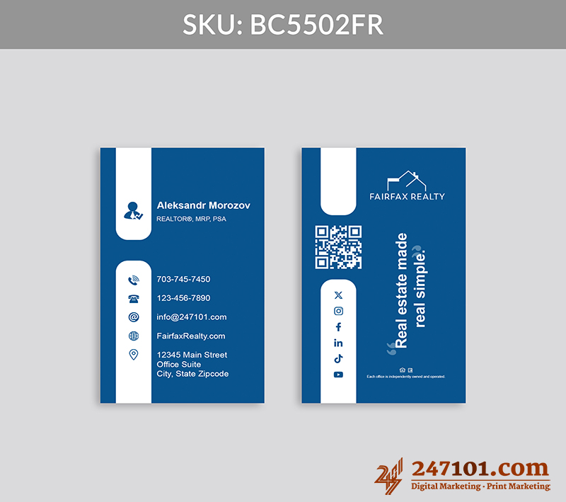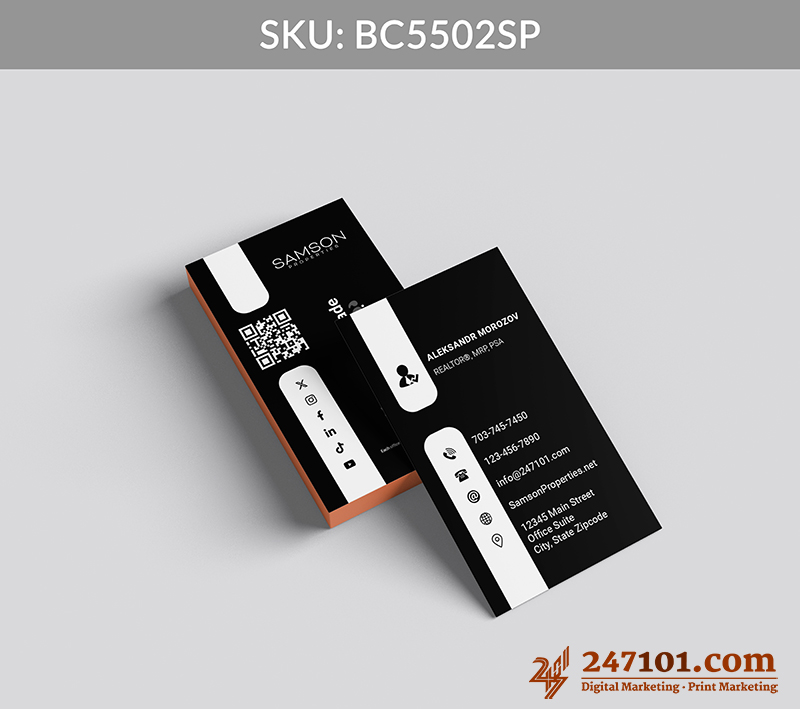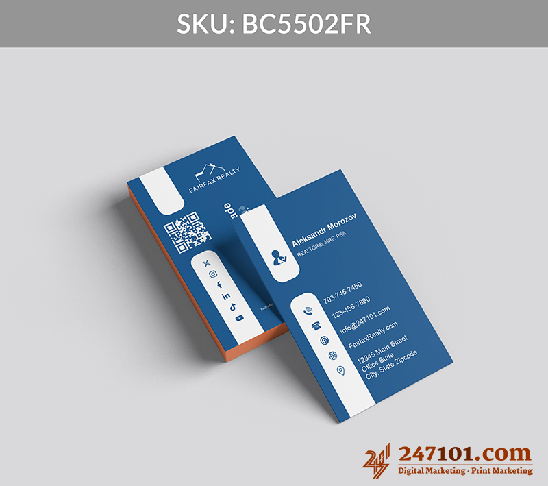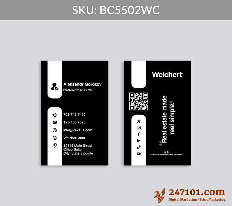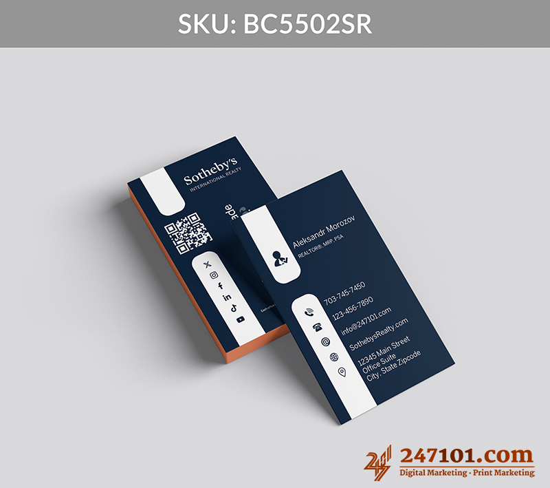 Turn every introduction into a connection with clear contact information, QR code, and social media icons that make digital engagement effortless and intuitive.