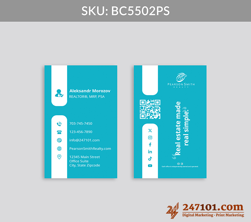 Stand out with a bold vertical layout that immediately captures attention, communicates professionalism, and ensures your card is memorable in any stack.