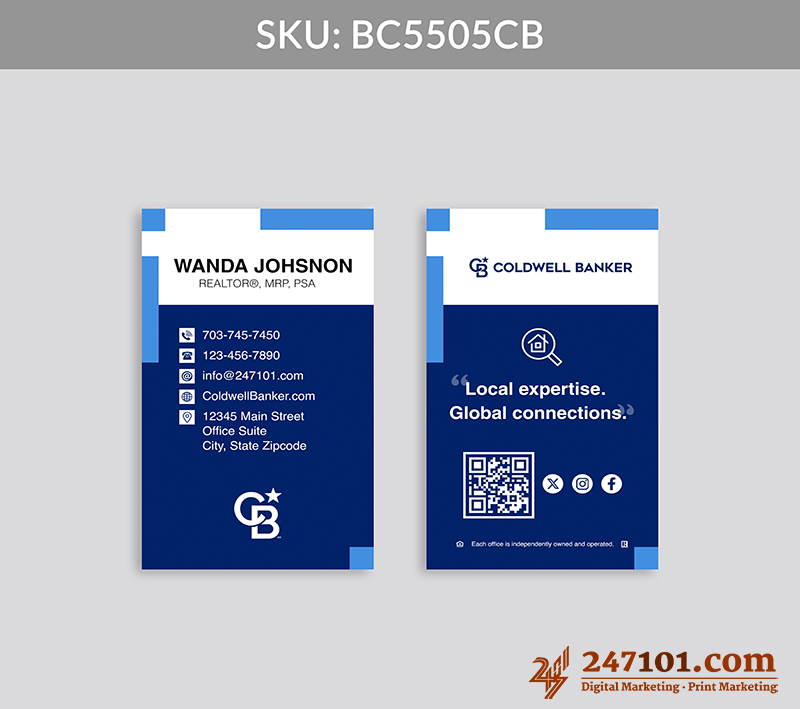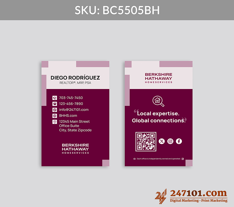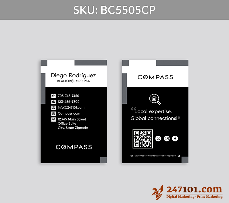 Encourage effortless client engagement through clearly displayed contact information, a QR Code, and social media icons that make connecting fast and simple.