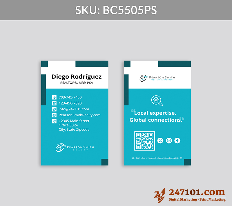 Vertical Modern Business Card with Interactive QR Code & Social Media Integration