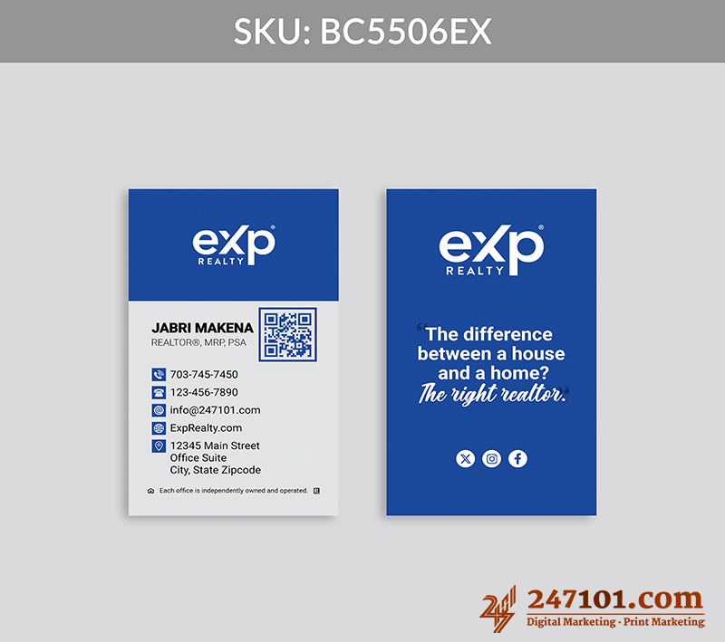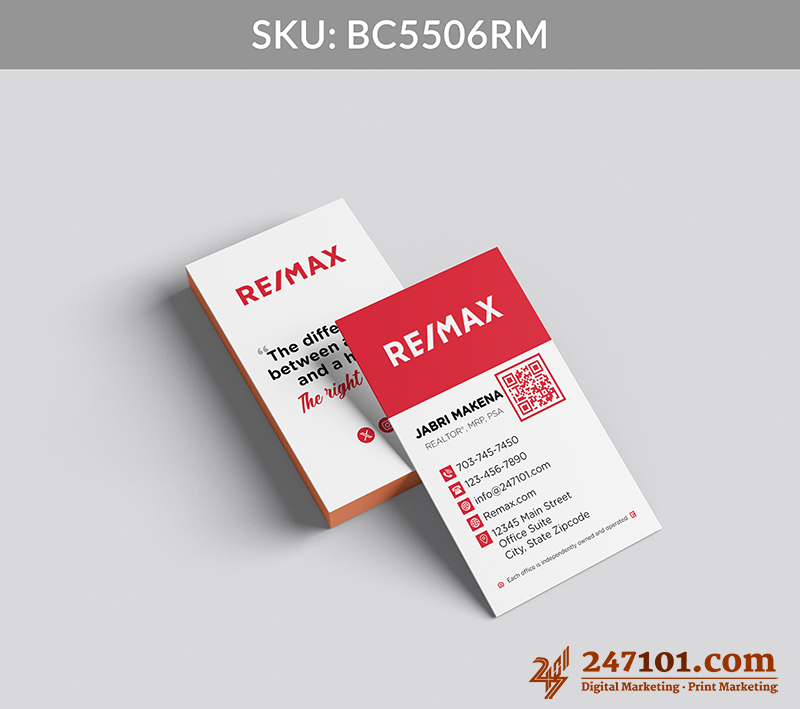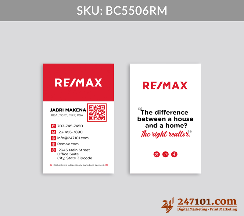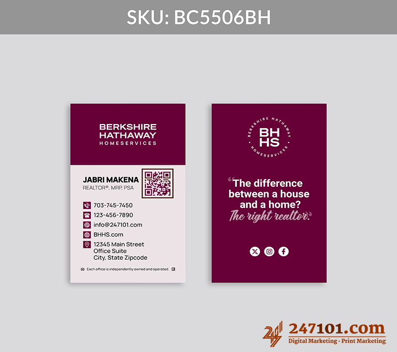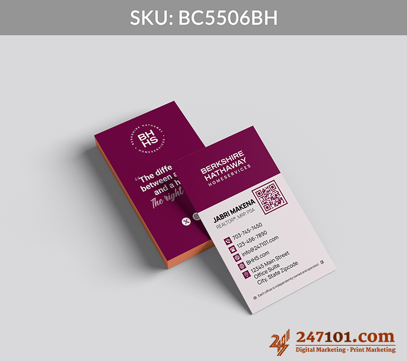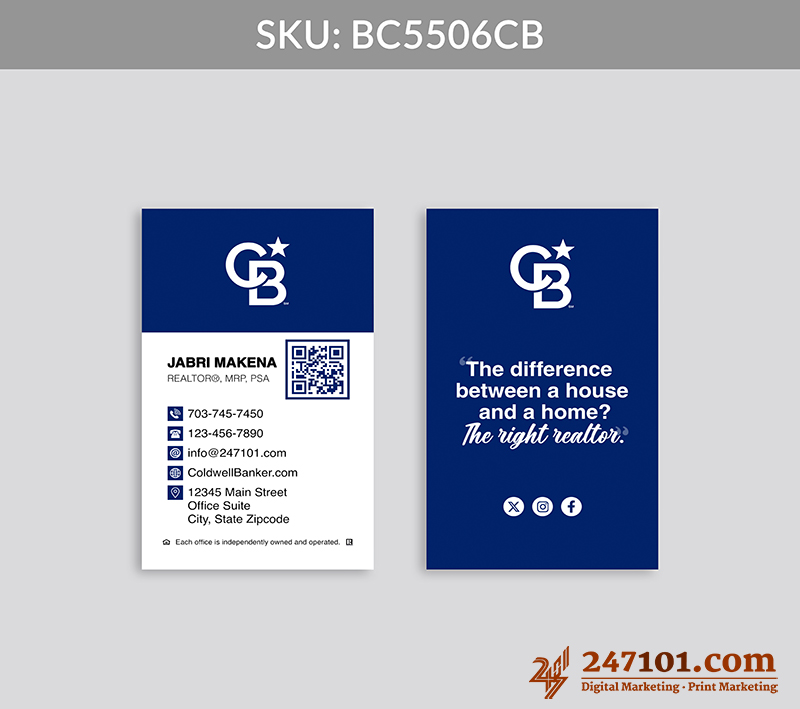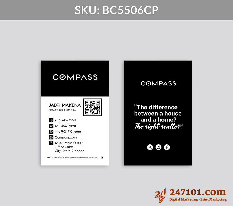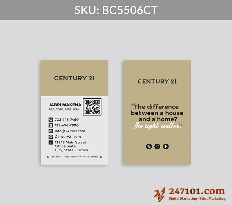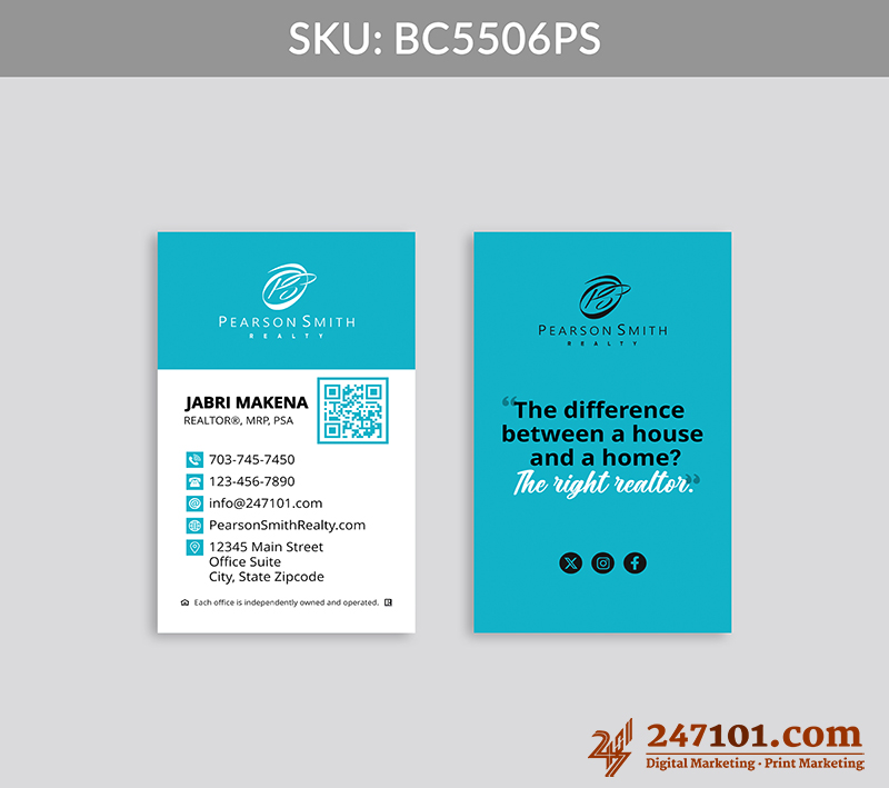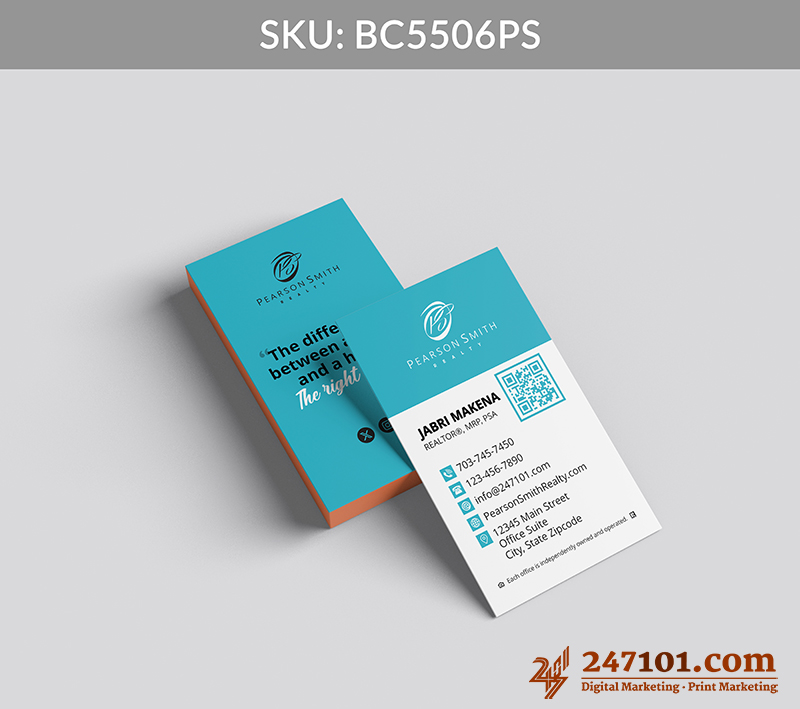Strengthen brand recall by pairing your slogan with social media icons on the back, showcasing expertise and inviting clients to connect across multiple platforms.