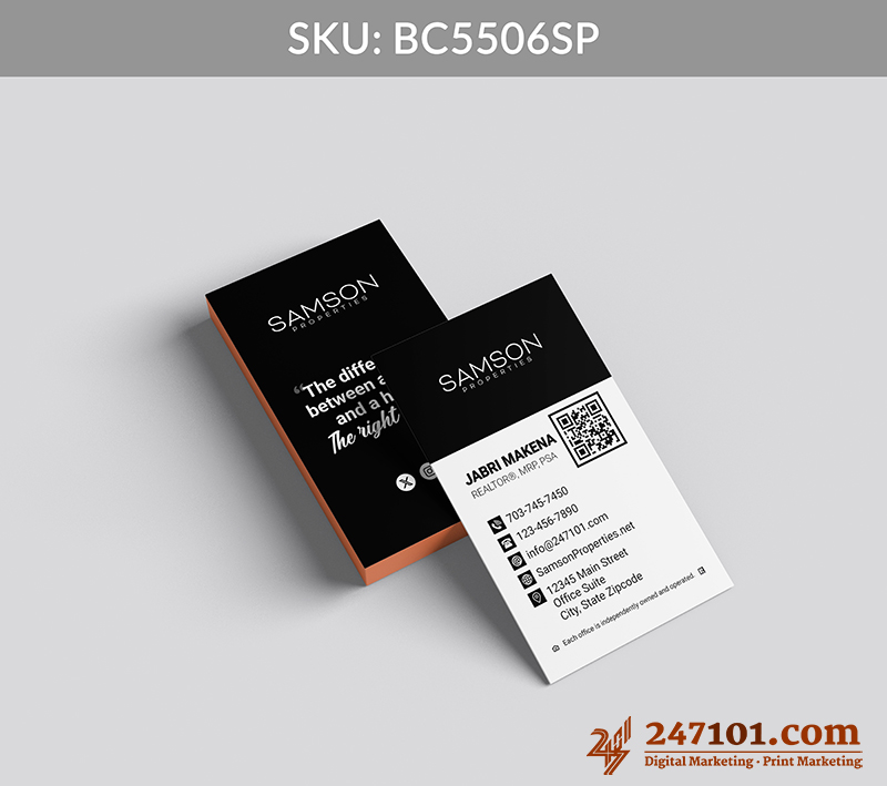 We offer a range of business card materials, including Paper Stock options like Premium Stock, ultra-thick cardstock For a polished look, you can choose from Premium Finishing options such as matte, glossy, or soft-touch laminate, pearl, or Painted Edge Card. Additionally, our Specialty Style options include Rounded , Square, and Leaf Style for added elegance. For more available choices, check the order form above or our Business Cards Options section below.